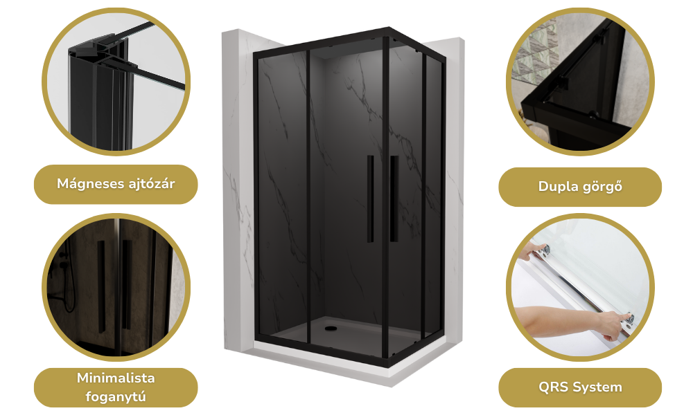 Az általunk legfontosabbnak vélt tulajdonságok szögletes zuhanykabinunknál: