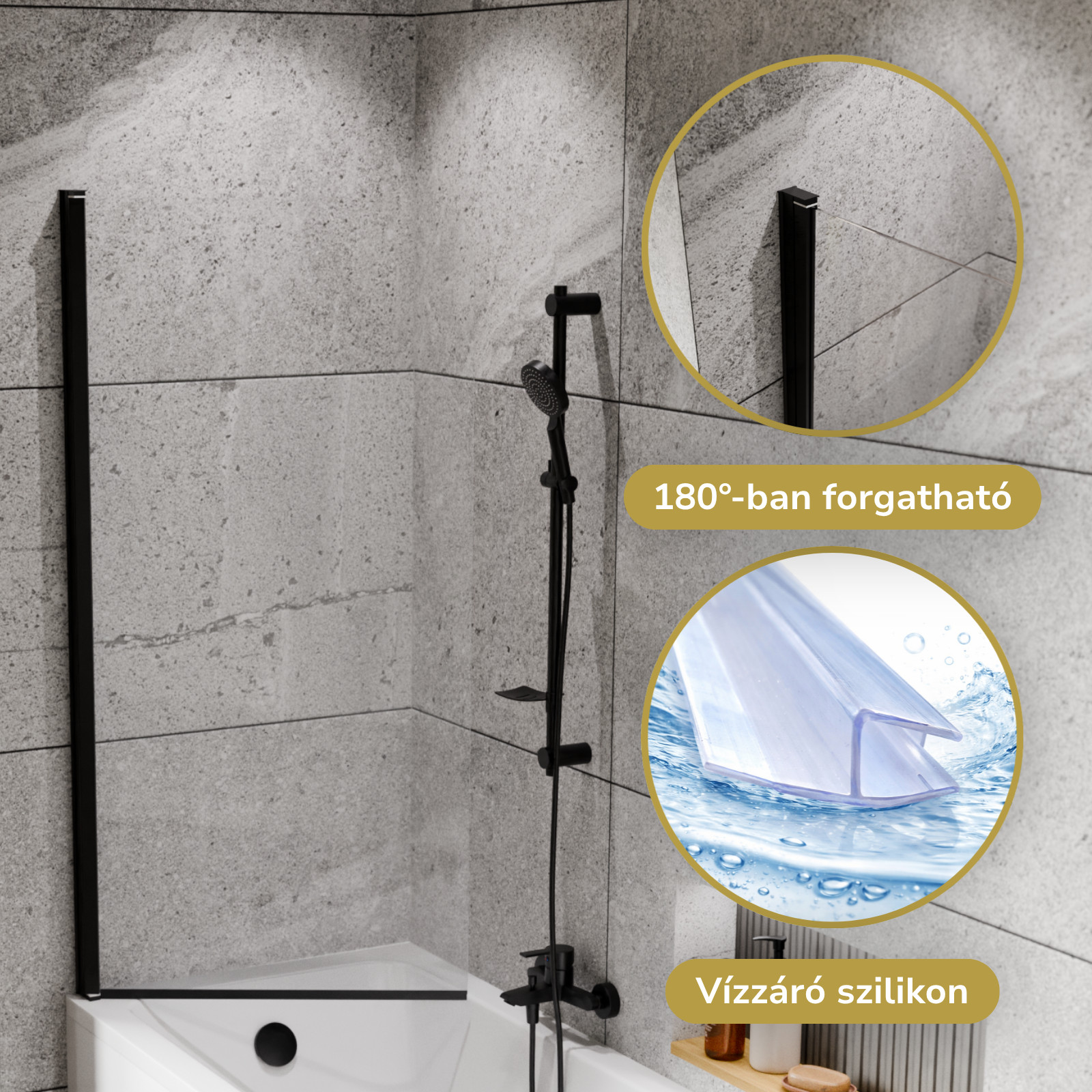 HD Leo Black 70x140 kihajtható 1 szárnyú kádparaván