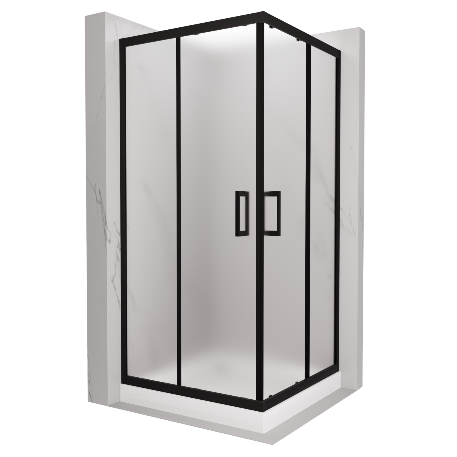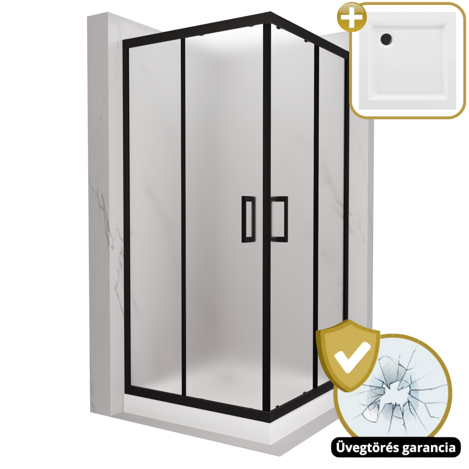 HD Moment 80x80 szögletes két tolóajtós zuhanykabin fehér magas zuhanytálcával és króm szifonnal