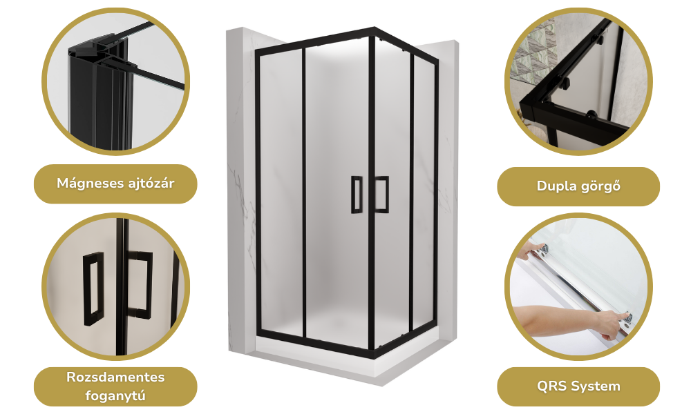 Az általunk legfontosabbnak vélt tulajdonságok szögletes zuhanykabinunknál: