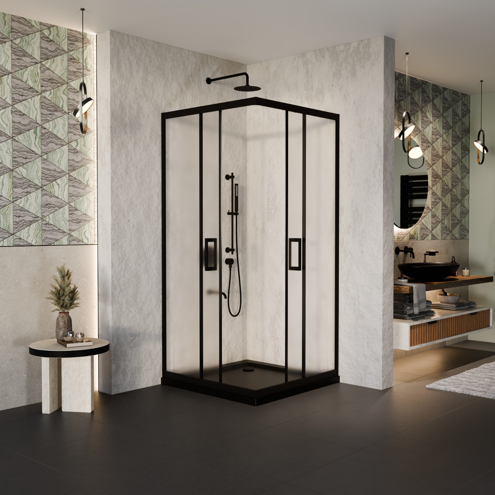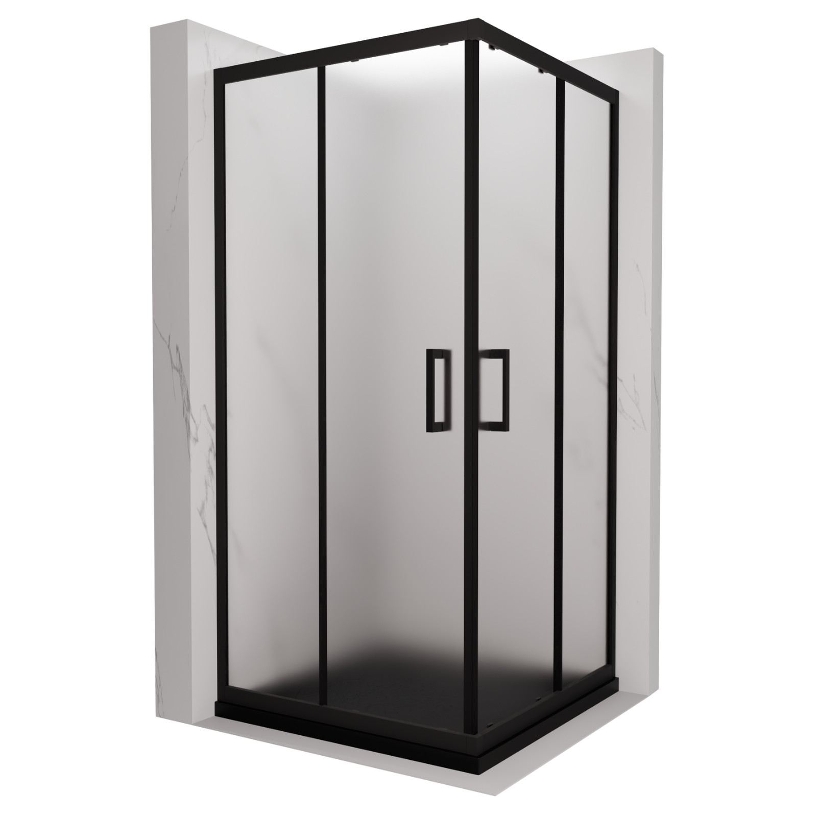 HD Moment 80x80 szögletes két tolóajtós zuhanykabin fekete slim zuhanytálcával és króm szifonnal