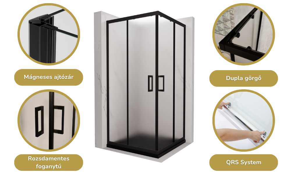Az általunk legfontosabbnak vélt tulajdonságok szögletes zuhanykabinunknál: