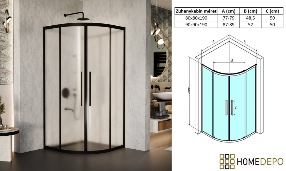 Napjainkban a praktikum mellett a fürdőszoba esztétikus megjelenése is fontos szempont. Az átlátszó üveges zuhanykabinok egyik előnye, hogy nem szűkitik össze a teret, elegáns, légies megjelenést kölcsönöznek a fürdőszobának. Az átlátszó üvegű zuhanykabinok a hagyományos és modern fürdőszobákban is megállják a helyüket. Az tolóajtónál az ajtónyílásból elvesznek az egymásra csúszó részek. Kisebb helyiségekben is kiváló megoldás lehet helytakarékosság szempontjából, mivel így nem kell arra figyeljen, hogy legyen elég hely az ajtó kinyitásához. A lekerekített ívű zuhanykabin az egyik legelterjedtebb forma hazánkban. Általában akkor alkalmazzák, ha kedvezőbb térkihasználást szeretnének a fürdőszobában, mert a lekerekített ív miatt több és kényelmesebb közlekedő felület maradhat. Saját márkás, Homedepo Moment, íves zuhanykabinunk, dupla görgőkkel érhető el, aminek köszönhetően jobban eloszlik a terhelés, egy ajtó 2 pont helyett 4 ponton gördül. Ez nagy mértékben biztosítja az egyenletesebb, simább működést és a hosszabb élettartamot. A görgők további fontos tulajdonságai közé sorolható, hogy Quick release systemmel ellátottak, aminek segítségével könnyedén fel- és leszerelhető a könnyedebb tisztítás érdekében.