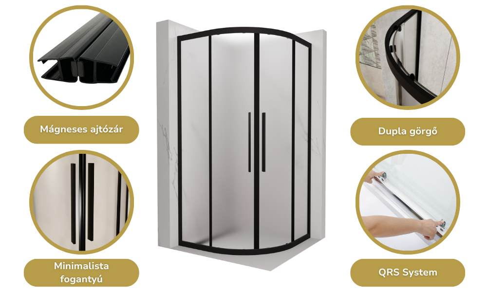 Az általunk legfontosabbnak vélt tulajdonságok íves zuhanykabinunknál: