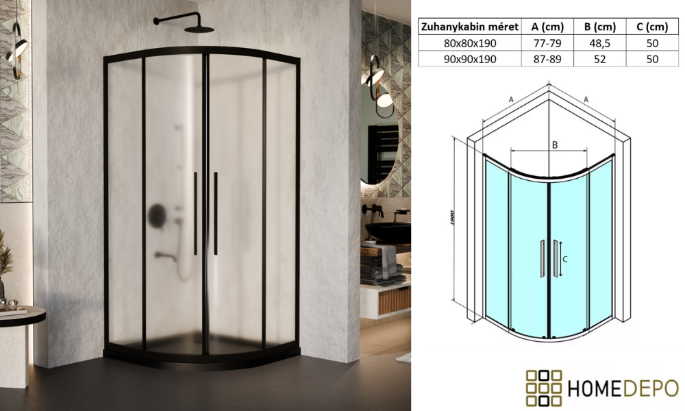 - Termék mérete: 90x90x190 cm