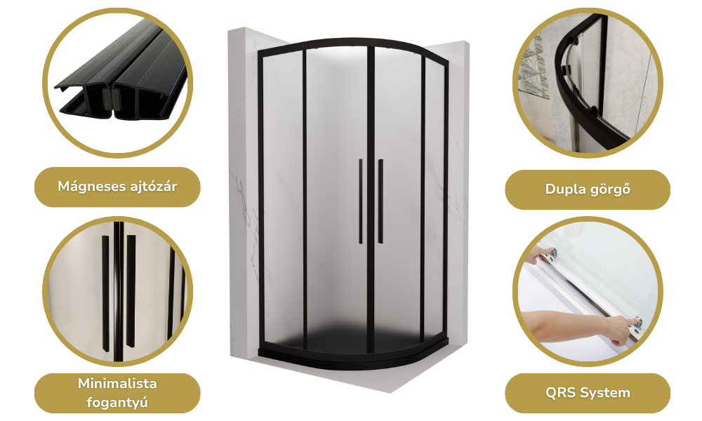 Az általunk legfontosabbnak vélt tulajdonságok íves zuhanykabinunknál: