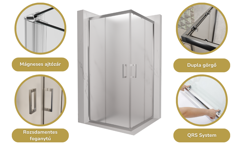 Az általunk legfontosabbnak vélt tulajdonságok szögletes zuhanykabinunknál:
