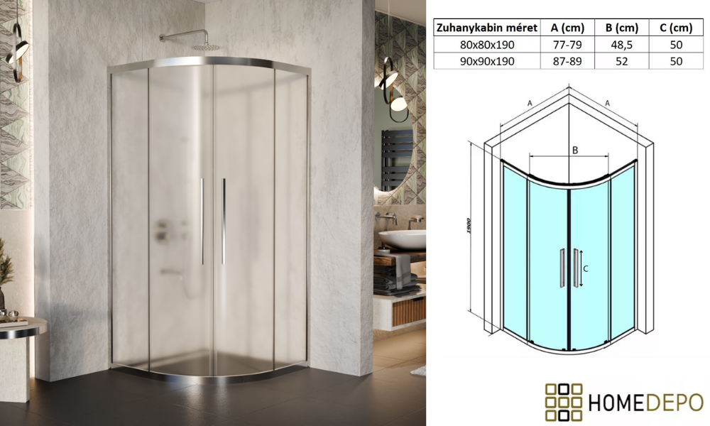 Napjainkban a praktikum mellett a fürdőszoba esztétikus megjelenése is fontos szempont. Az átlátszó üveges zuhanykabinok egyik előnye, hogy nem szűkitik össze a teret, elegáns, légies megjelenést kölcsönöznek a fürdőszobának. Az átlátszó üvegű zuhanykabinok a hagyományos és modern fürdőszobákban is megállják a helyüket. Az tolóajtónál az ajtónyílásból elvesznek az egymásra csúszó részek. Kisebb helyiségekben is kiváló megoldás lehet helytakarékosság szempontjából, mivel így nem kell arra figyeljen, hogy legyen elég hely az ajtó kinyitásához. A lekerekített ívű zuhanykabin az egyik legelterjedtebb forma hazánkban. Általában akkor alkalmazzák, ha kedvezőbb térkihasználást szeretnének a fürdőszobában, mert a lekerekített ív miatt több és kényelmesebb közlekedő felület maradhat. Saját márkás, Homedepo Nova, íves zuhanykabinunk, dupla görgőkkel érhető el, aminek köszönhetően jobban eloszlik a terhelés, egy ajtó 2 pont helyett 4 ponton gördül. Ez nagy mértékben biztosítja az egyenletesebb, simább működést és a hosszabb élettartamot. A görgők további fontos tulajdonságai közé sorolható, hogy Quick release systemmel ellátottak, aminek segítségével könnyedén fel- és leszerelhető a könnyedebb tisztítás érdekében.