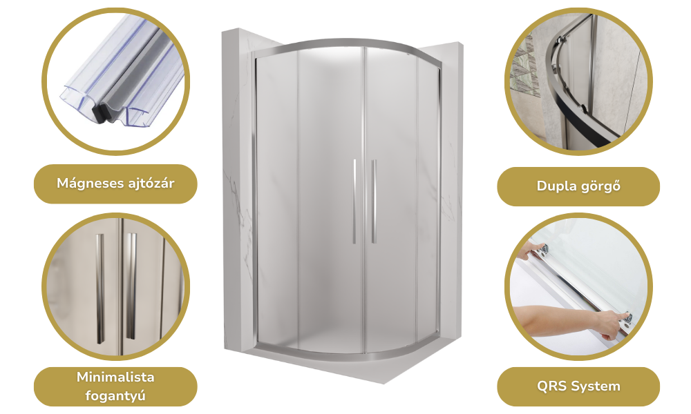 Az általunk legfontosabbnak vélt tulajdonságok íves zuhanykabinunknál: