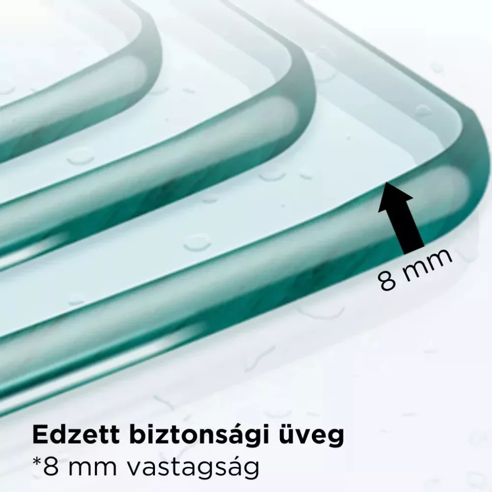 - Prémium krómozott alumínium kerettel ellátott 8 mm vastag biztonsági üveg nano bevonattal