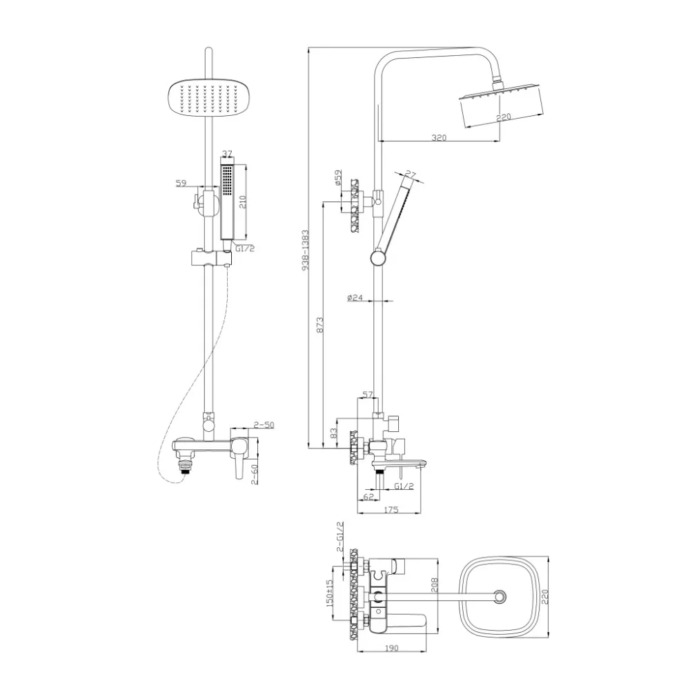 - Állítható magasságú zuhanyoszlop: 94-138 cm