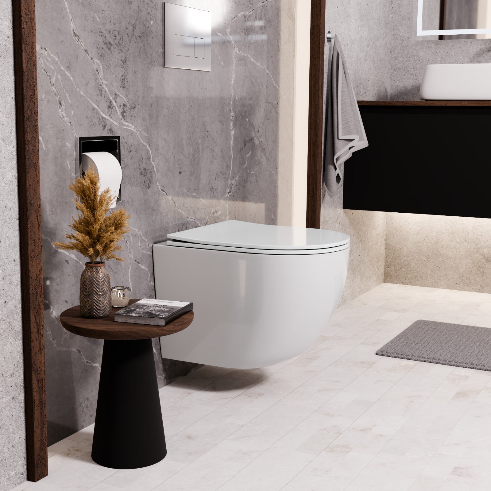 A slim/vékonyított kialakításű tetőnek köszönhetően a WC teljesen modern összképet mutat magáról, aminek hatására tökéletesen beleillik a mai modern fürdőszobák környzetébe.