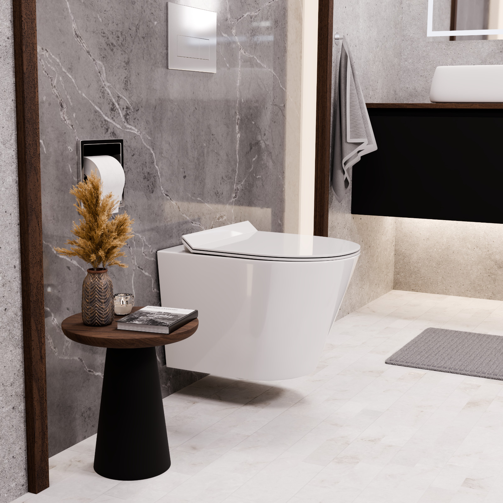 Napjainkban a praktikum mellett a fürdőszoba esztétikus megjelenése is fontos szempont. A fali WC-k egyre elterjedtebbé válnak, mivel számos előnnyel rendelkeznek, ide sorolható a modern, könnyed megjelenés és funkcionalitás. A fali WC-k a klasszikus és modernebb stílusú fürdőszobákban is megállják a helyüket egyaránt. Nagyfokú rugalmasság jellemzi őket, mivel szinte bárhol elhelyezhetők a fürdőszobán belül. További előnyük, hogy könnyedén tisztíthatóvá válik a fürdőszoba a fali elhelyezésnek köszönhetően. Ezen felül a WC különlegessége, hogy peremnélküli kialakítású, így az öblítés nagyobb hatákonysággal megy végbe a használat során, illetve a baktréiumoknak nem jut lehetőség a letelepedésre.