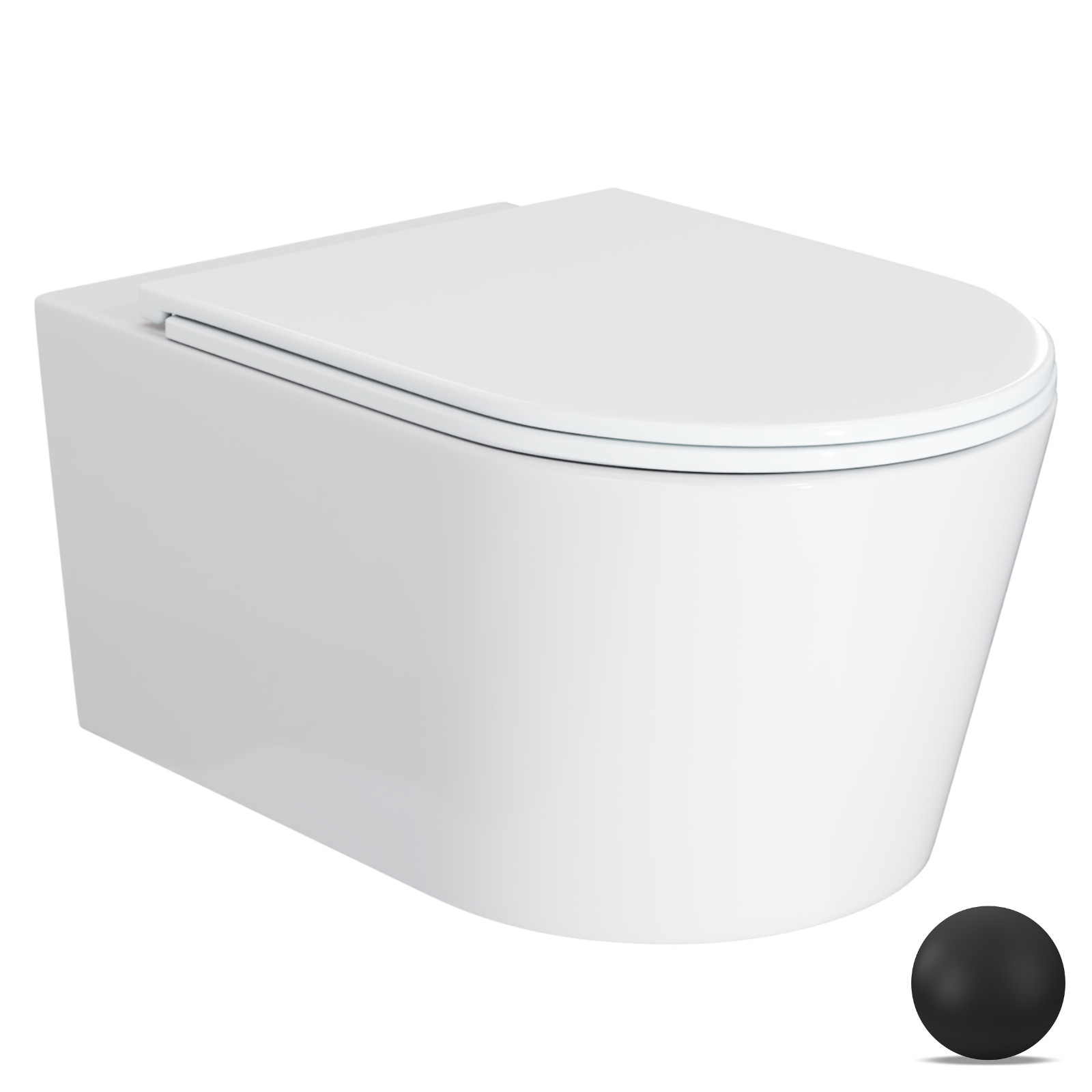 HD Noa Glossy White perem nélküli mély öblítésű íves fali WC slim "A" tetővel és matt fekete zsanérral