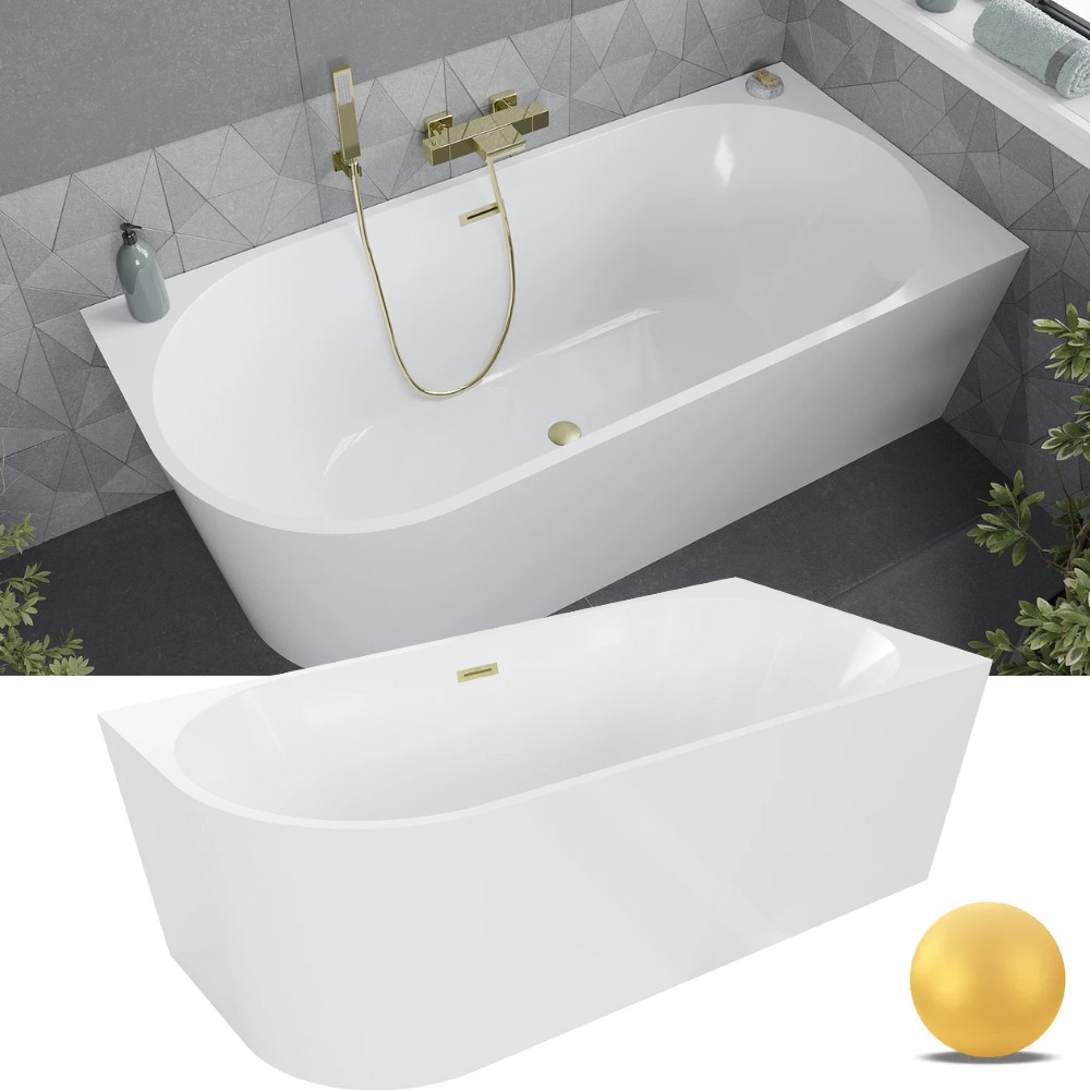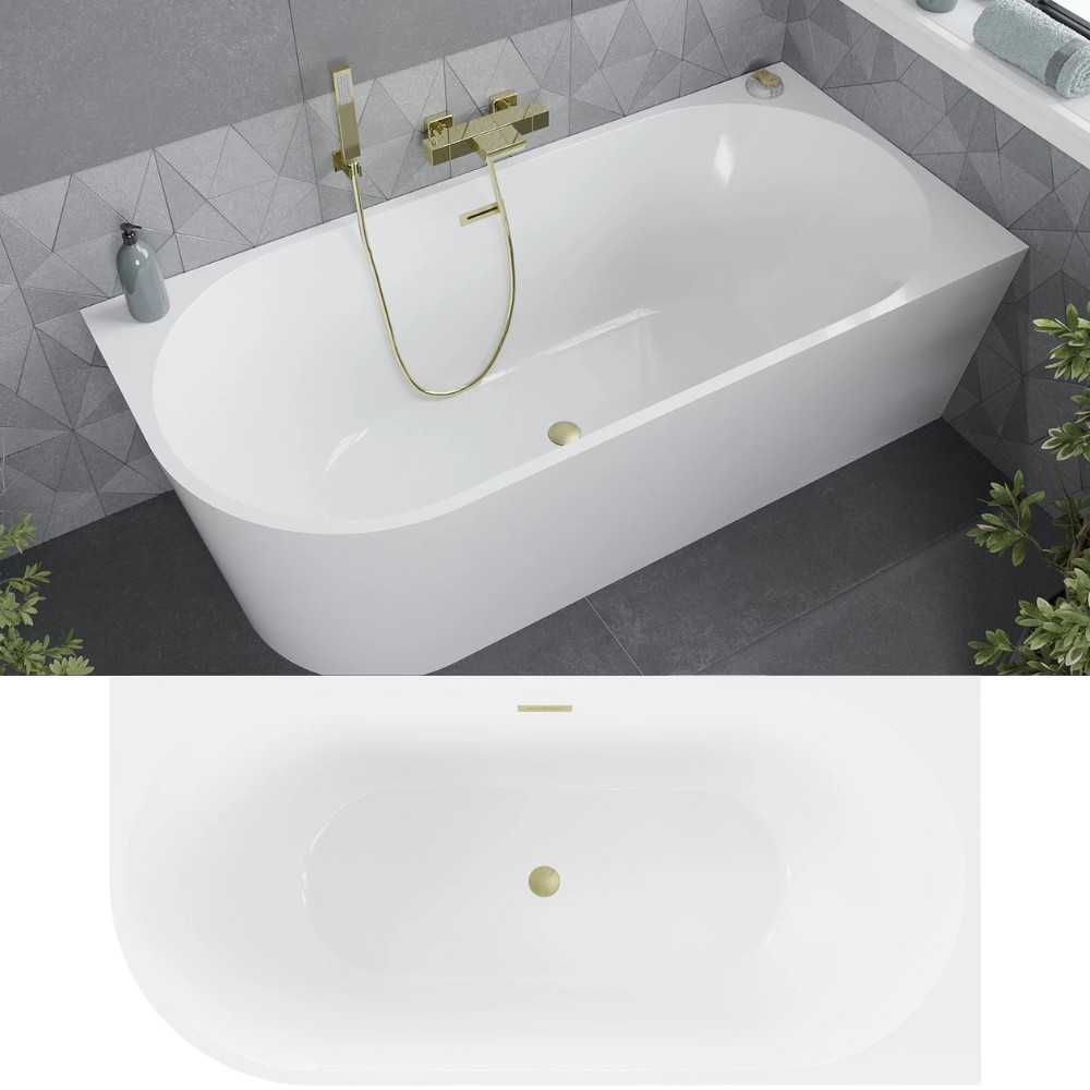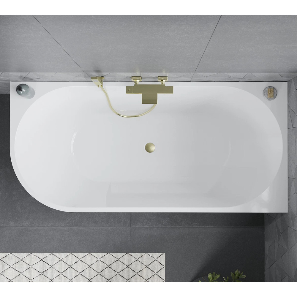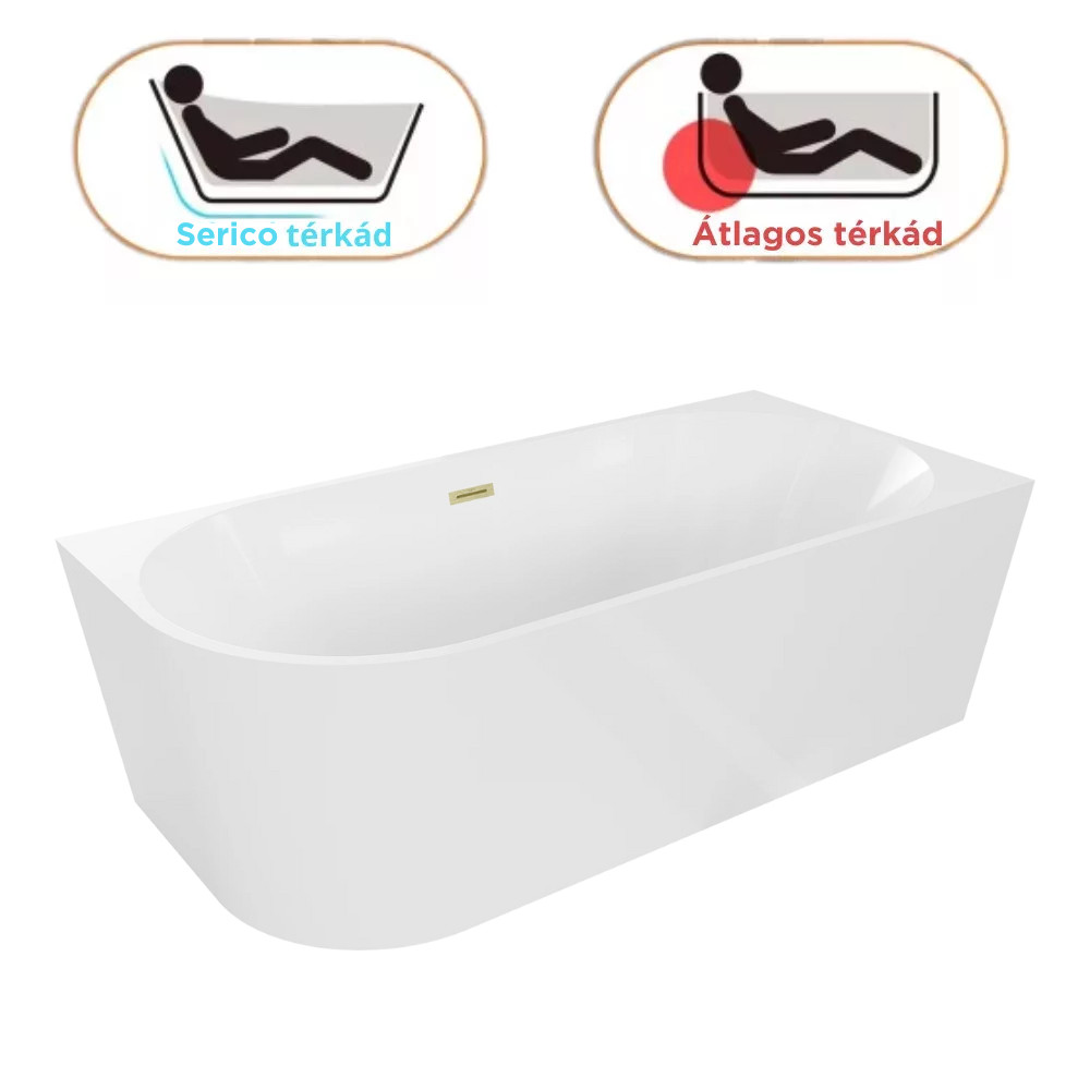 Serico jobbos félszabadonálló akril kád, 160 cm hosszú, szálcsiszolt arany elemekkel