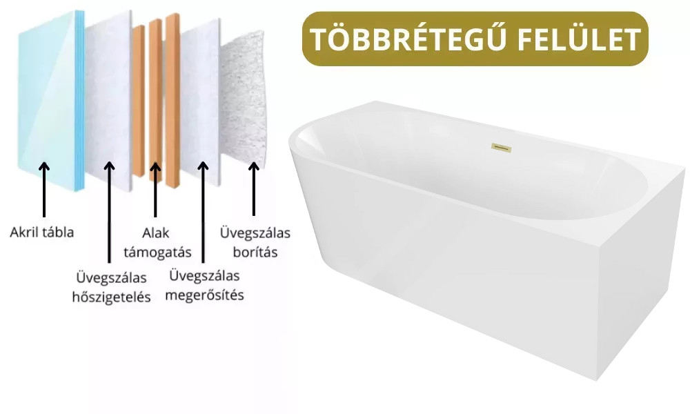 A fürdőkád műgyanta-üvegszálas erősítéssel készítik gyártáskor, aminek köszönhetően rendkívüli hőszigetelő képességgel rendelkezik. Ennek nagy előnye, hogy nem hűti el a vizet a kád felülete, így garantáljuk a hosszan tartó fürdőzést.