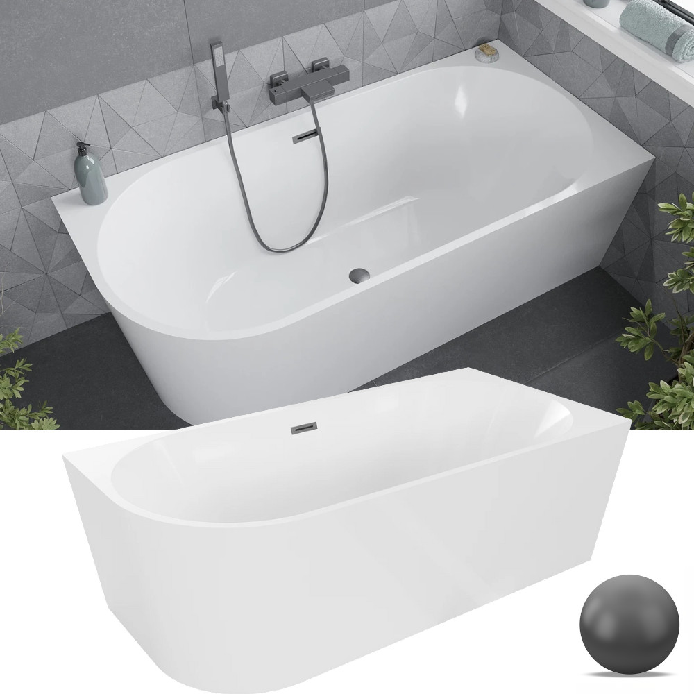HD Serico 160x80 cm jobbos félszabadonálló akril kád szürke túlfolyóval és click-clack leeresztővel