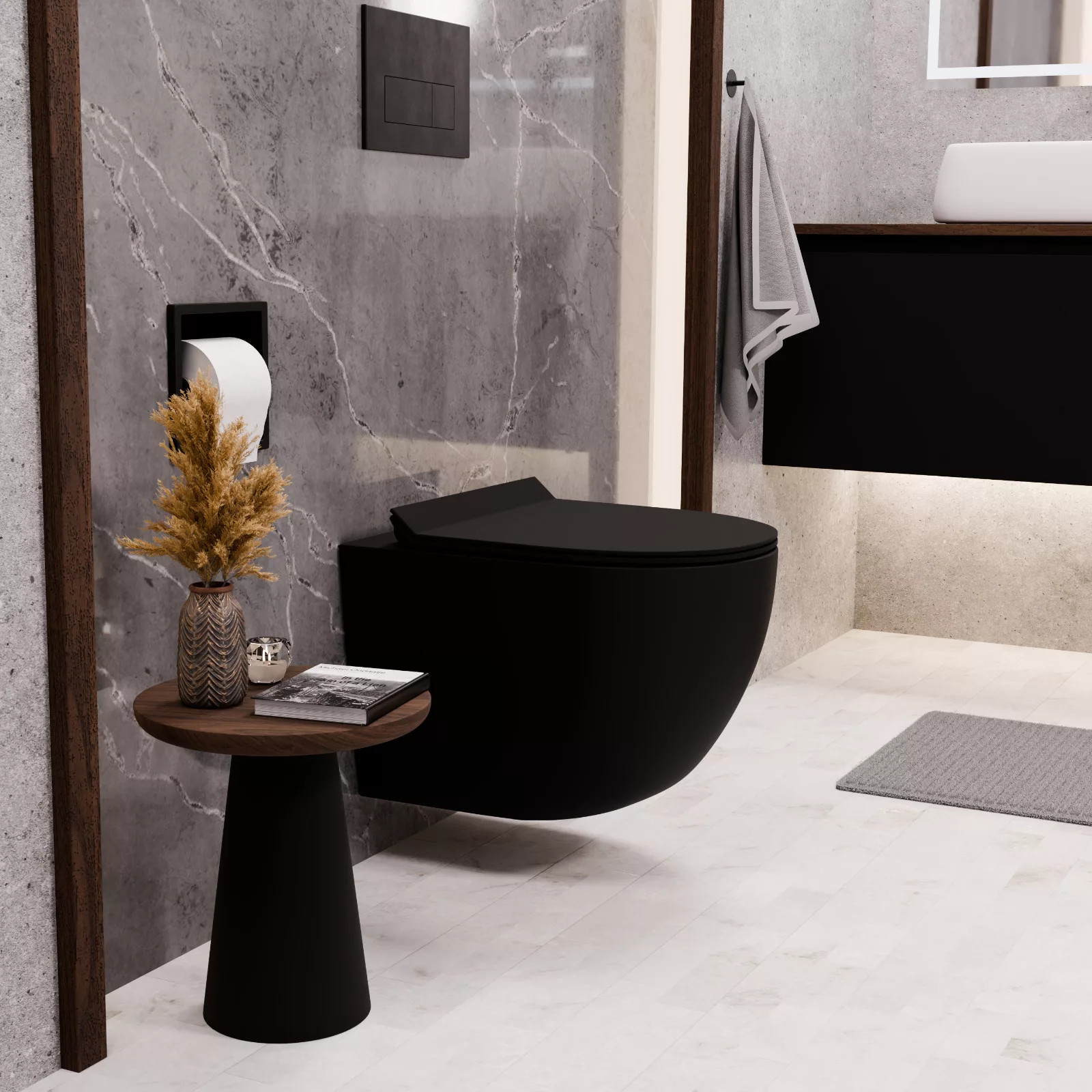 - Tartozékok: Slim WC tető, Matt fekete zsanér fedő