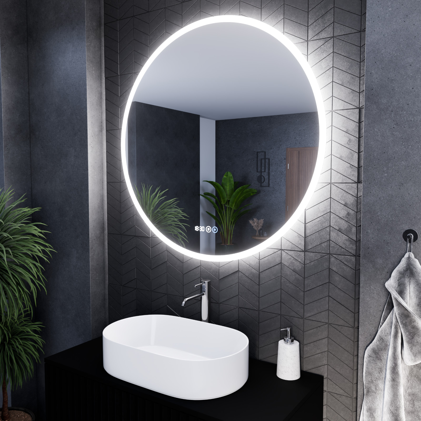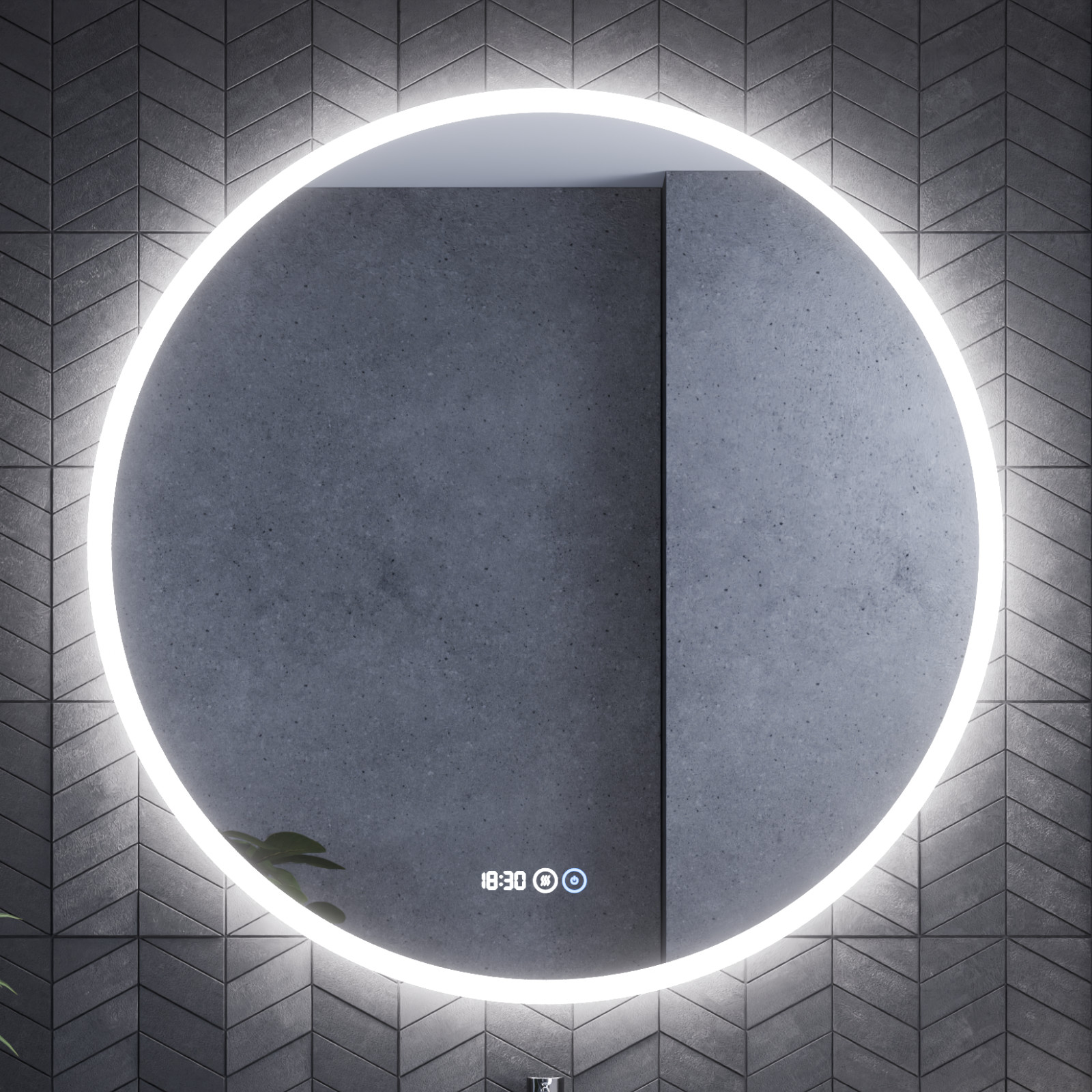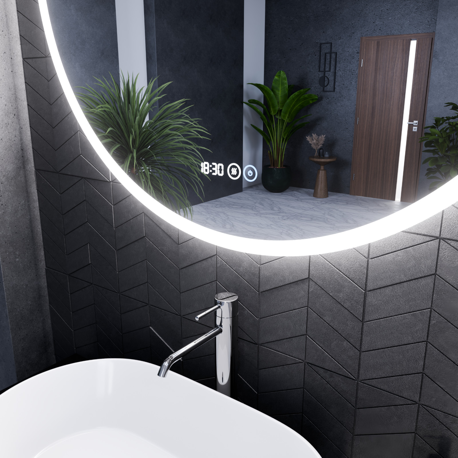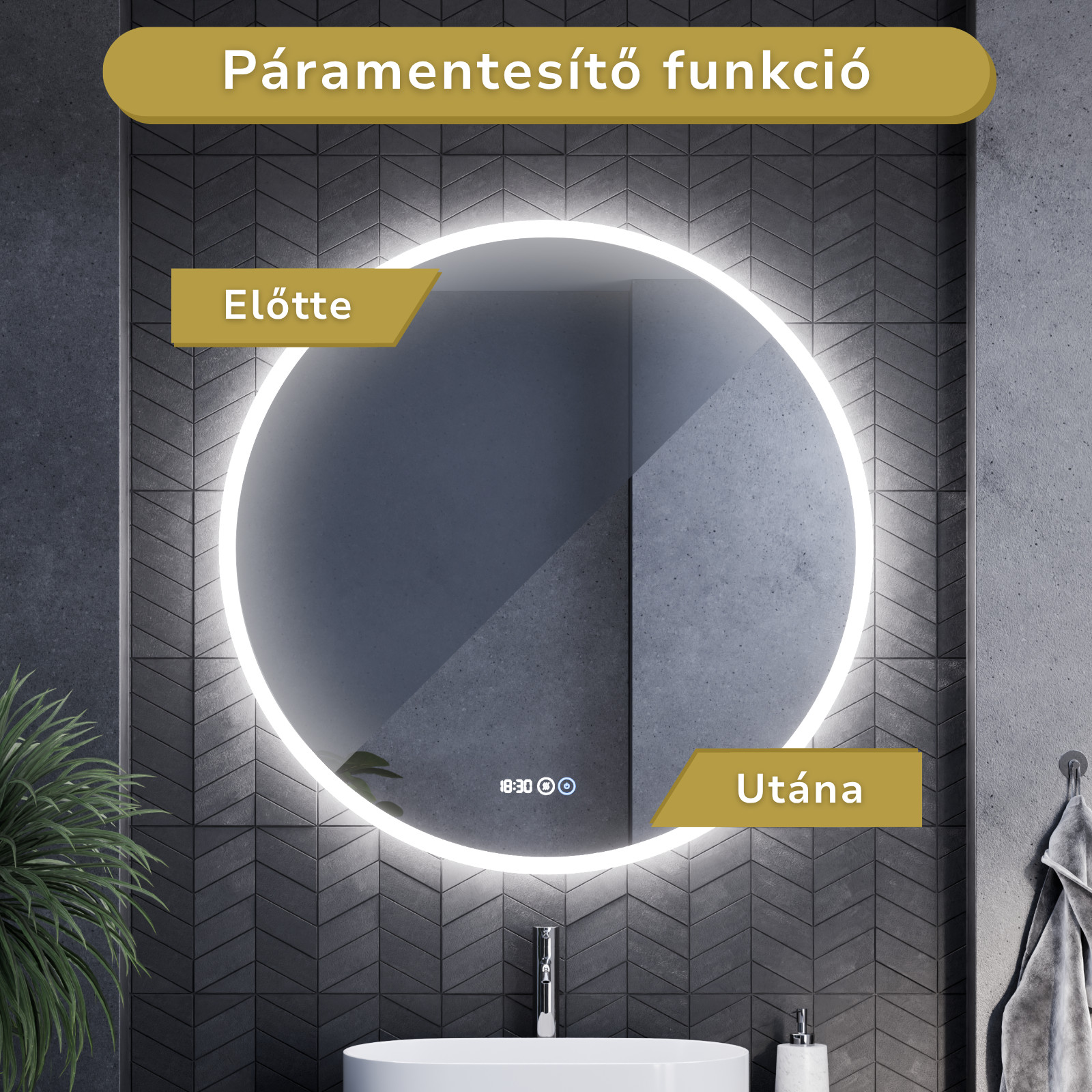 - Tükör funkciók: Ambient világítás, érintés kapcsoló, digitális óra, páramentesítő fűtés