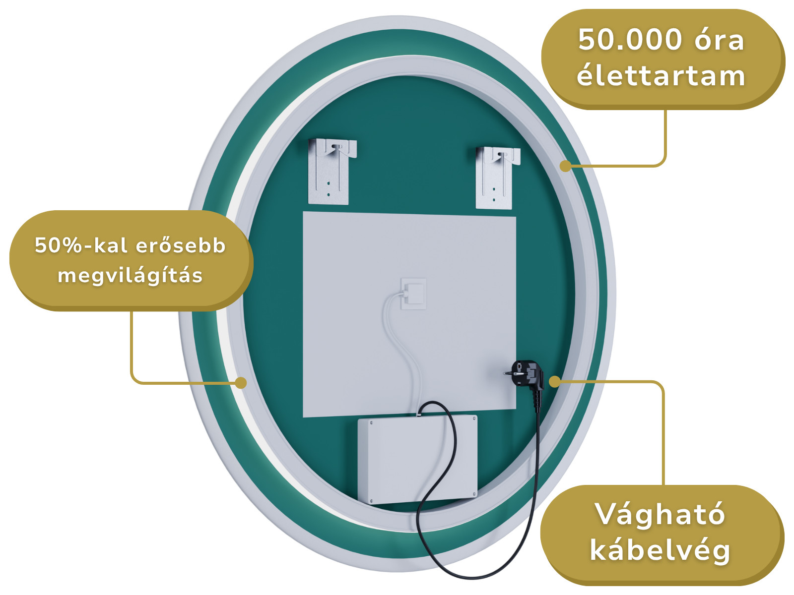 A tükör LED világítással rendelkezik, amely 3 féle színhőmérsékletet biztosít: meleg, semleges és hideg fehér.