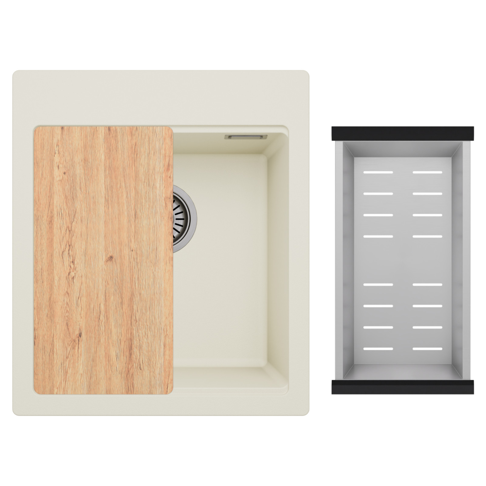 HD Infinity White 43 egymedencés mosogatótálca szett, vágódeszkával és csepegtetőkosárral, tört fehér
