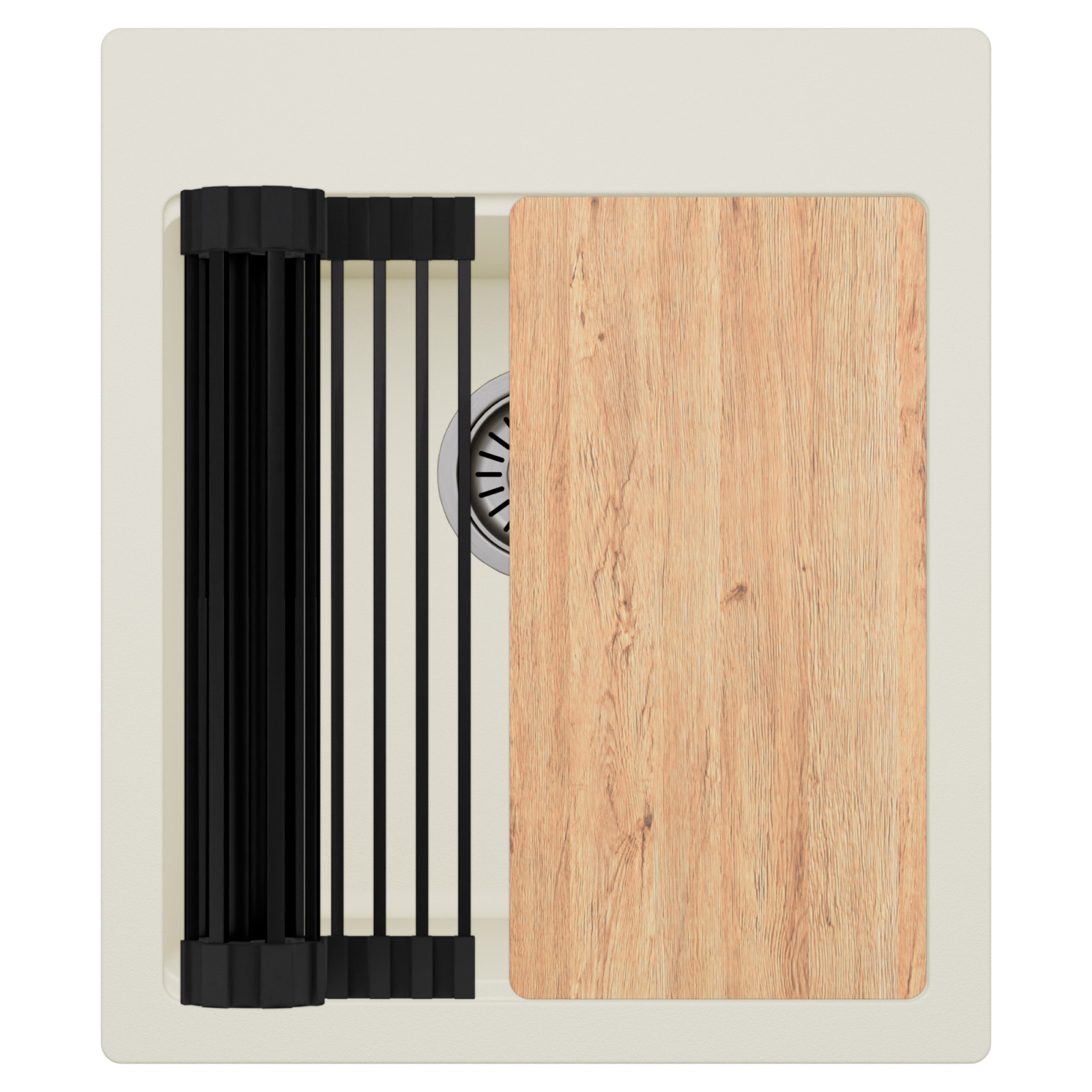 HD Infinity White 43 egymedencés mosogatótálca szett, vágódeszkával és csepegtetőráccsal, tört fehér