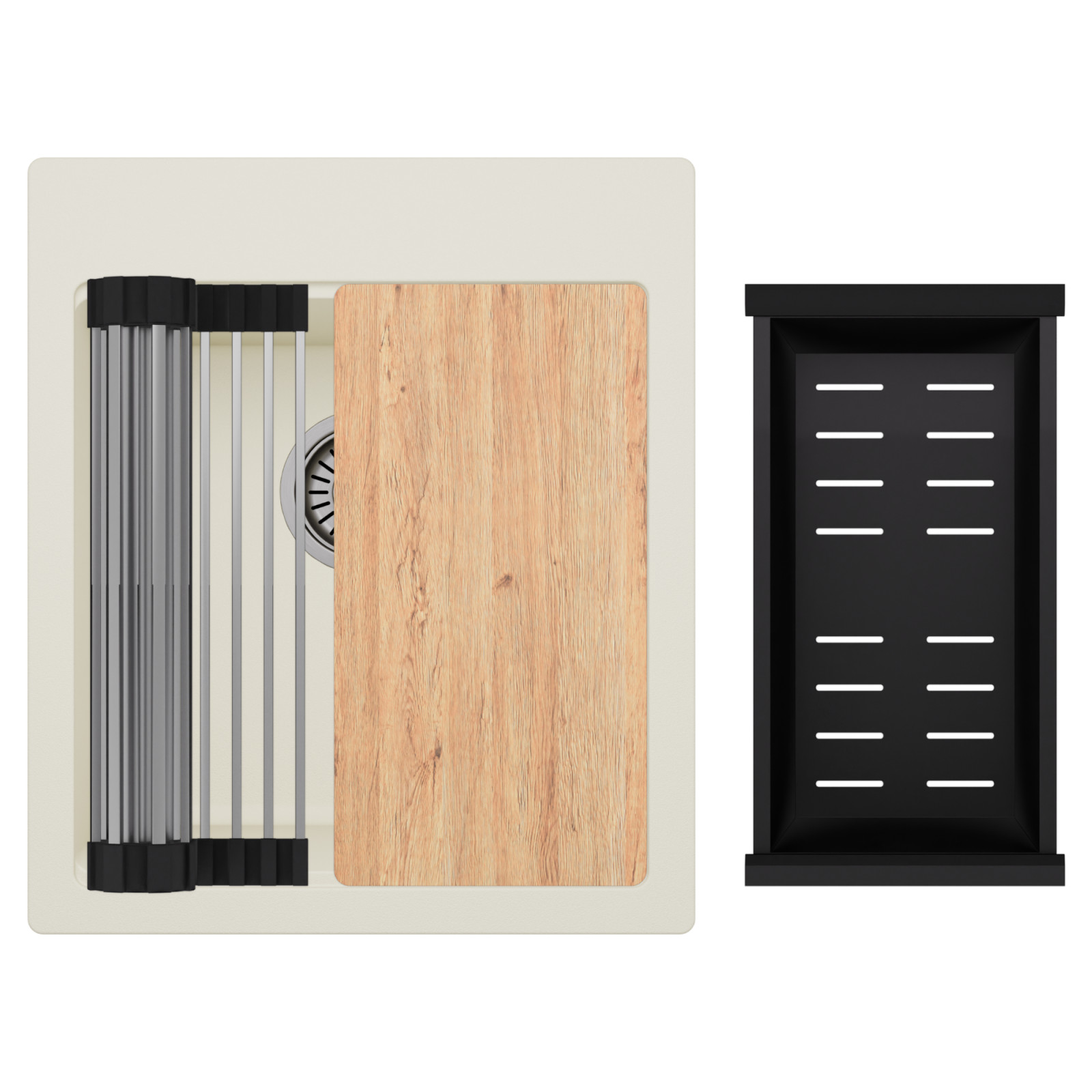 HD Infinity White 43 egymedencés mosogatótálca szett, vágódeszkával, csepegtetőráccsal és kosárral, tört fehér