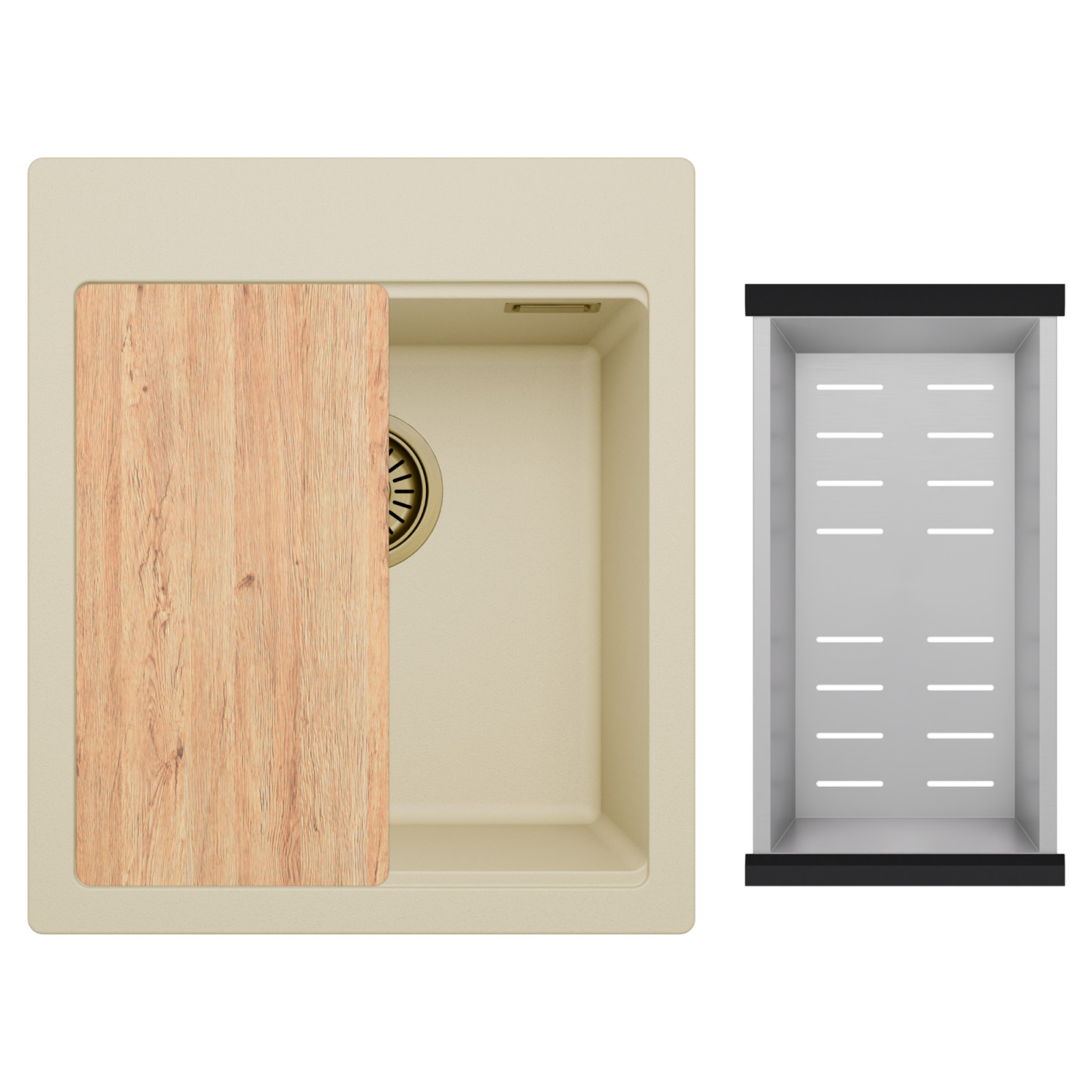 HD Infinity Beige 43 egymedencés mosogatótálca szett, vágódeszkával és csepegtetőkosárral, soft bézs