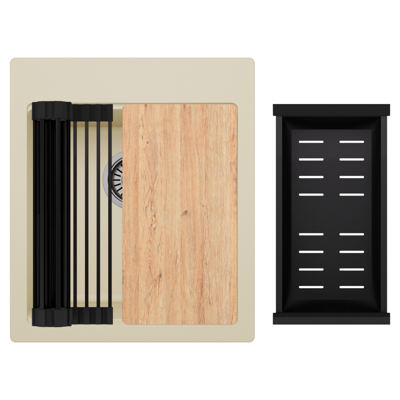 HD Infinity Beige 43 egymedencés mosogatótálca szett, vágódeszkával, csepegtetőráccsal és kosárral, soft bézs