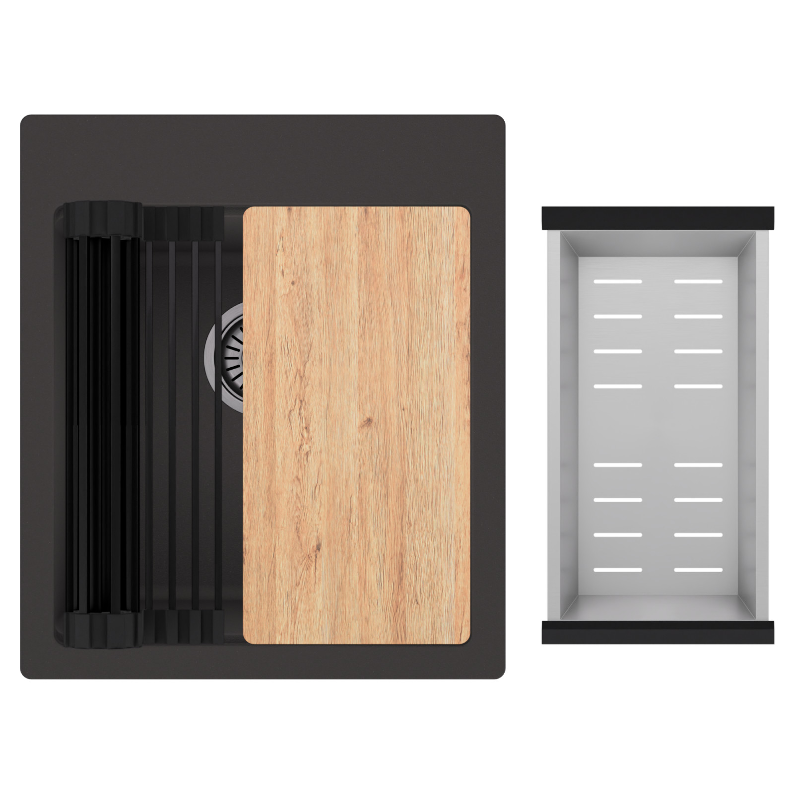 HD Infinity 43 egymedencés mosogatótálca szett, vágódeszkával, csepegtetőráccsal és kosárral, matt antracit