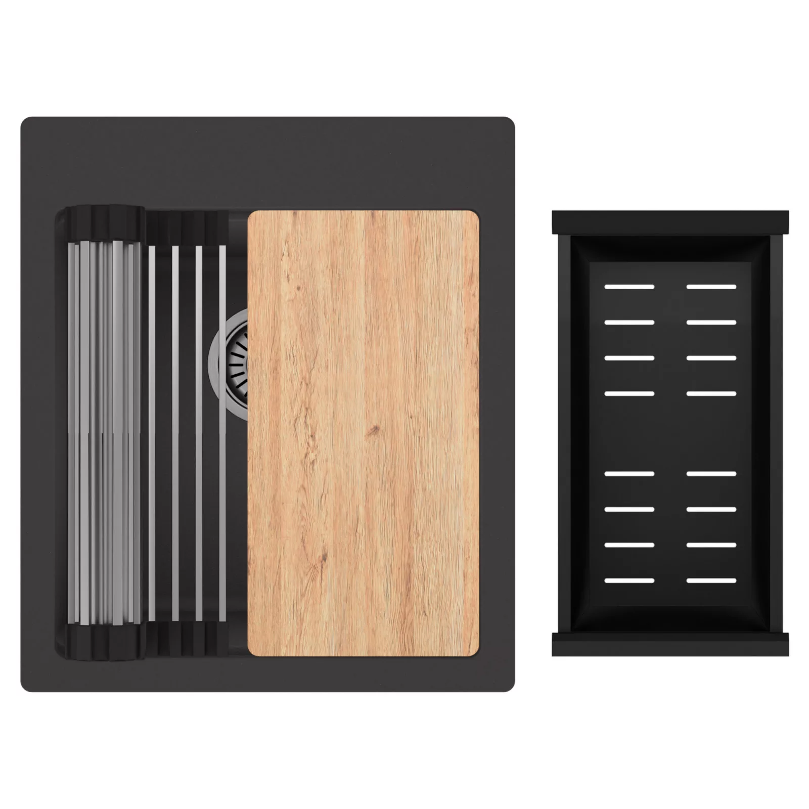 HD Infinity 43 egymedencés mosogatótálca szett, vágódeszkával, csepegtetőráccsal és kosárral, matt antracit
