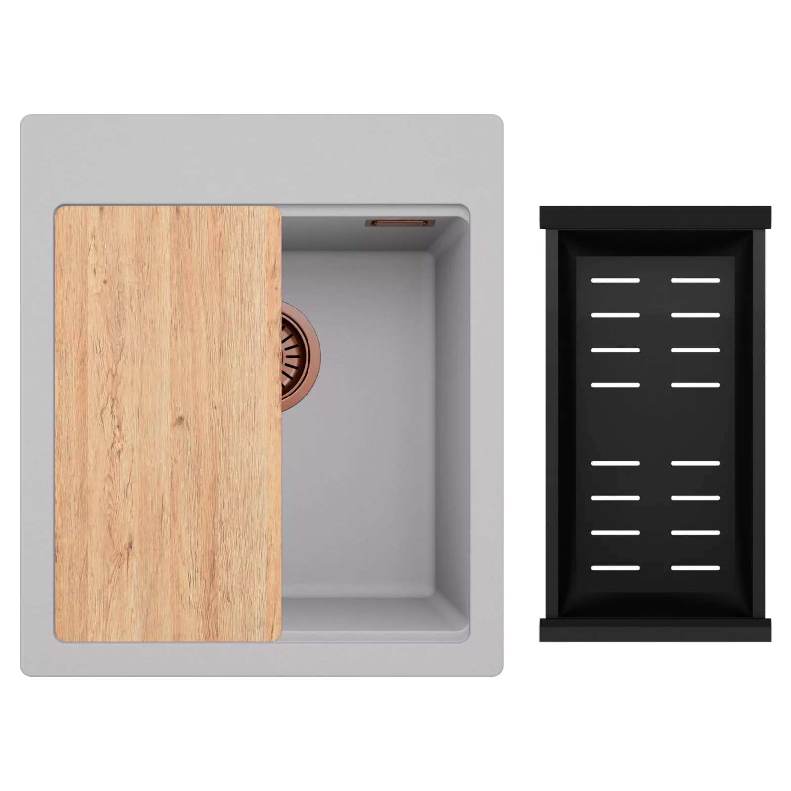 HD Infinity Grey 43 egymedencés mosogatótálca szett, vágódeszkával és csepegtetőkosárral, alpesi szürke