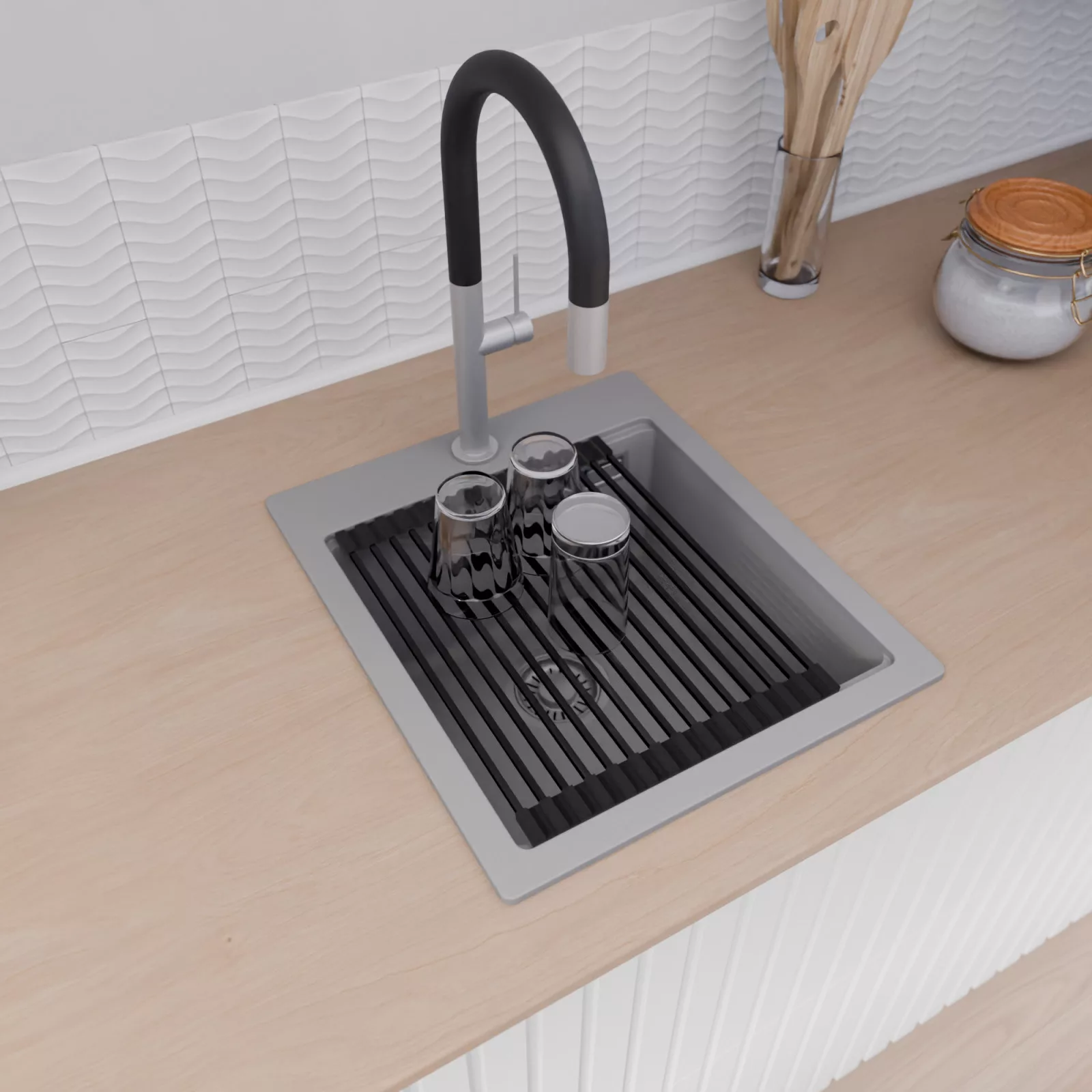 A mosogató prémium minőségű gránit kompozitból készült. Letisztult megjelenése mellett rendkívül praktikus, így bármilyen stílusú konyhába harmonikusan illeszkedik. A strapabíró gránit anyag hosszú távon is megbízható használatot garantál.