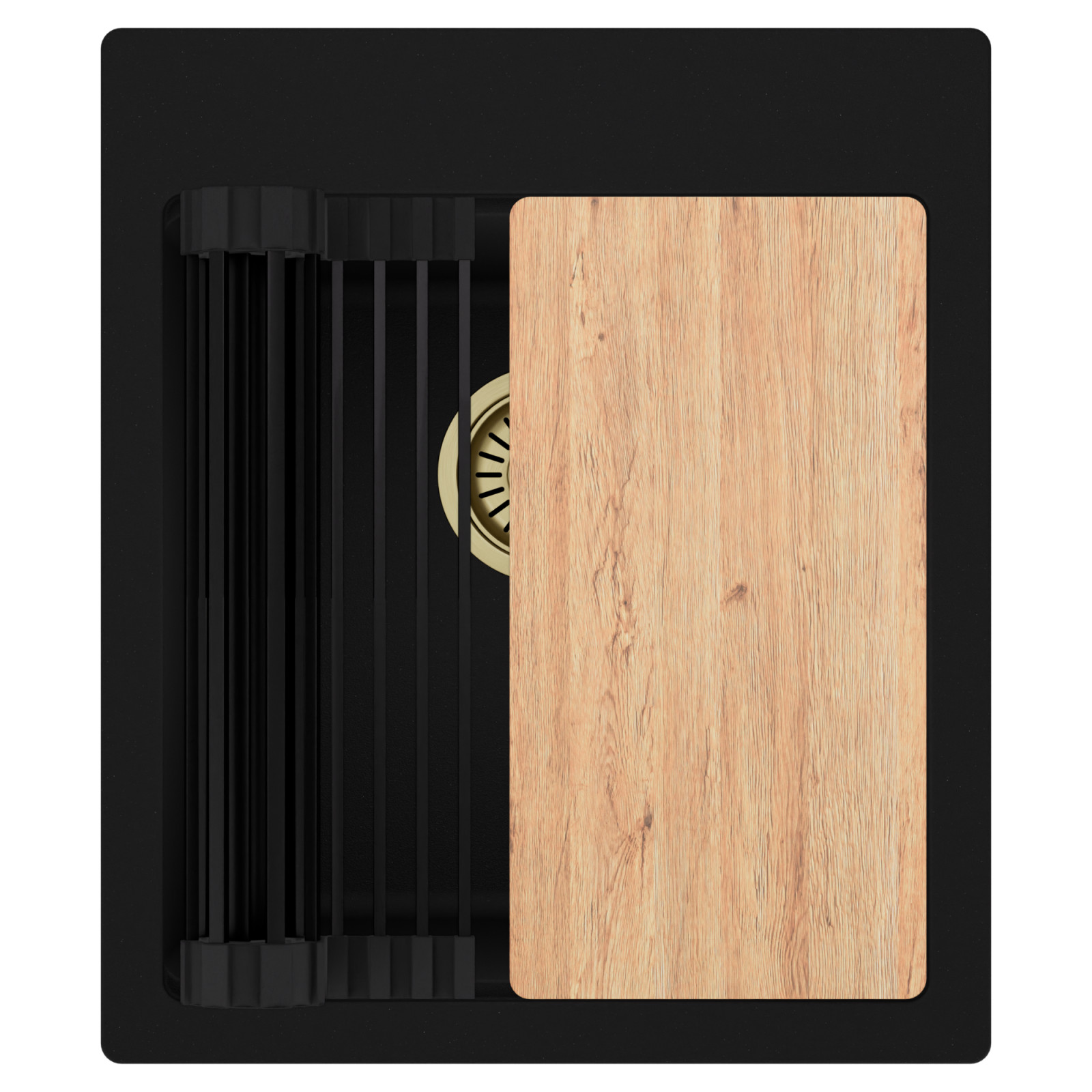 HD Infinity 43 egymedencés mosogatótálca szett, vágódeszkával és csepegtetőráccsal, szálcsiszolt arany