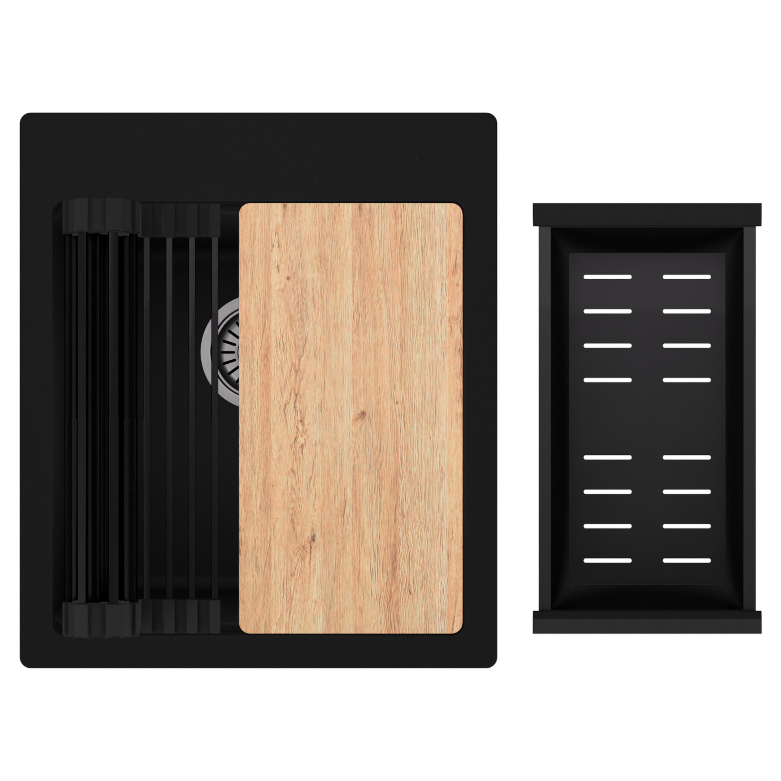HD Infinity 43 egymedencés mosogatótálca szett, vágódeszkával, csepegtetőráccsal és kosárral, matt fekete