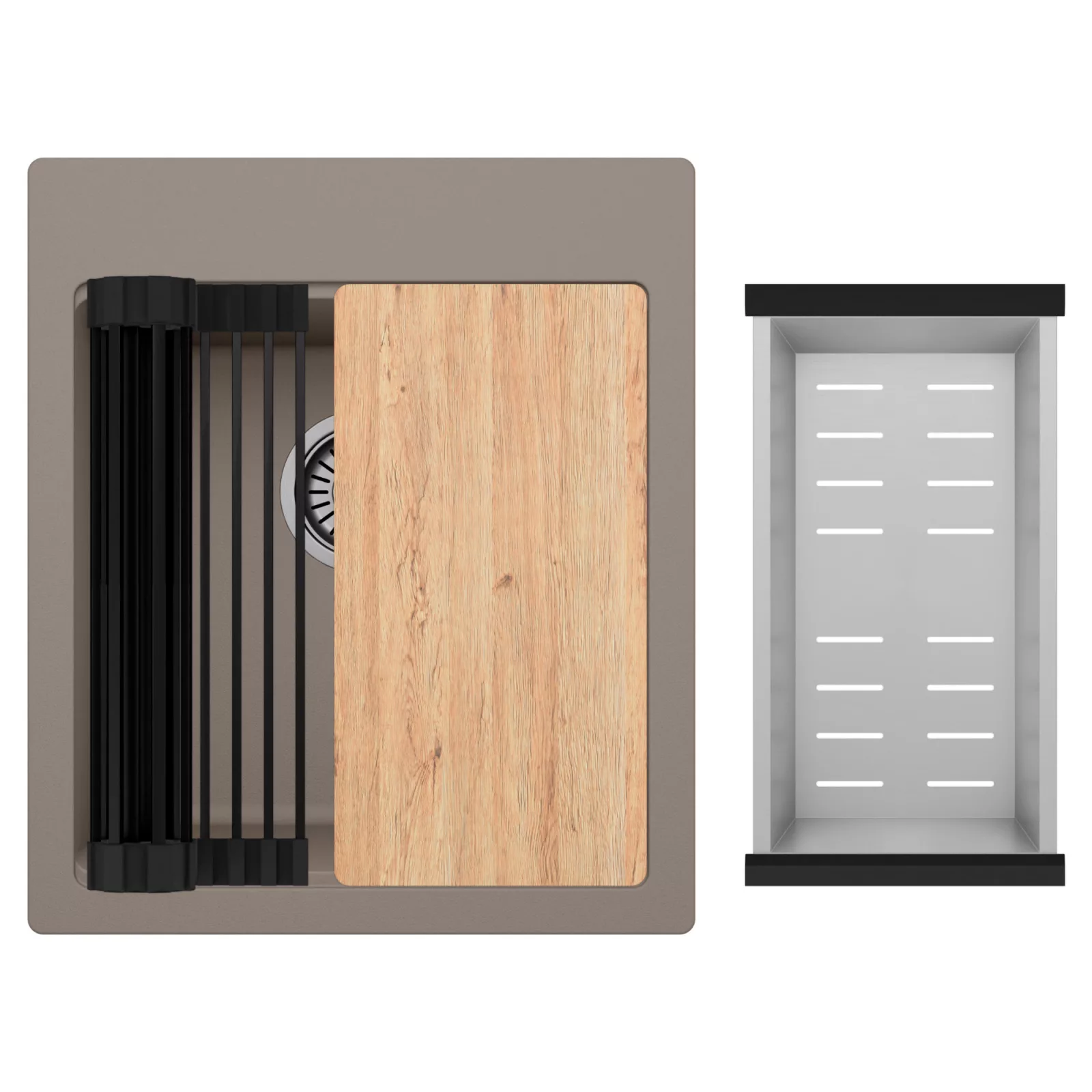 HD Infinity Tortora 43 egymedencés mosogatótálca szett, vágódeszkával, csepegtetőráccsal és kosárral, tortora