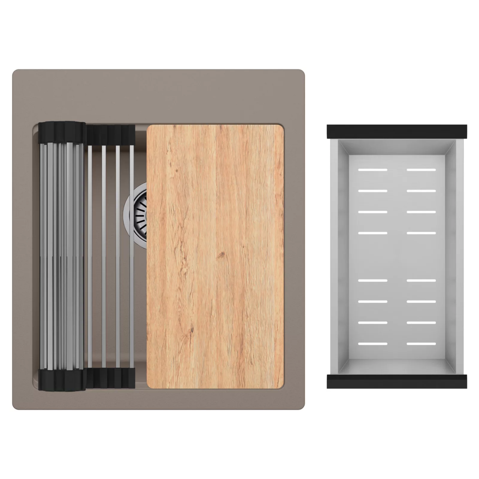 HD Infinity Tortora 43 egymedencés mosogatótálca szett, vágódeszkával, csepegtetőráccsal és kosárral, tortora