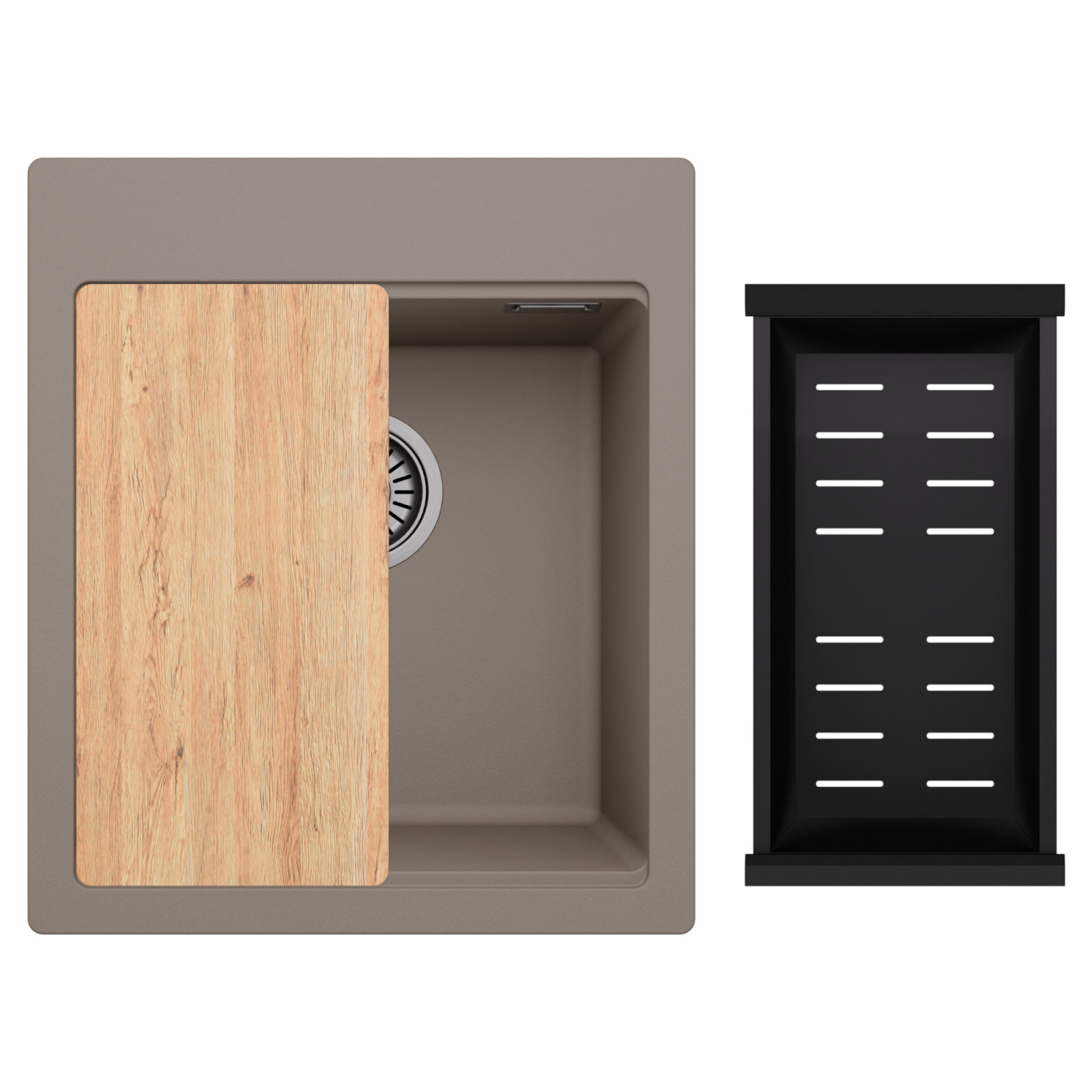 HD Infinity Tortora 43 egymedencés mosogatótálca szett, vágódeszkával és csepegtetőkosárral, tortora