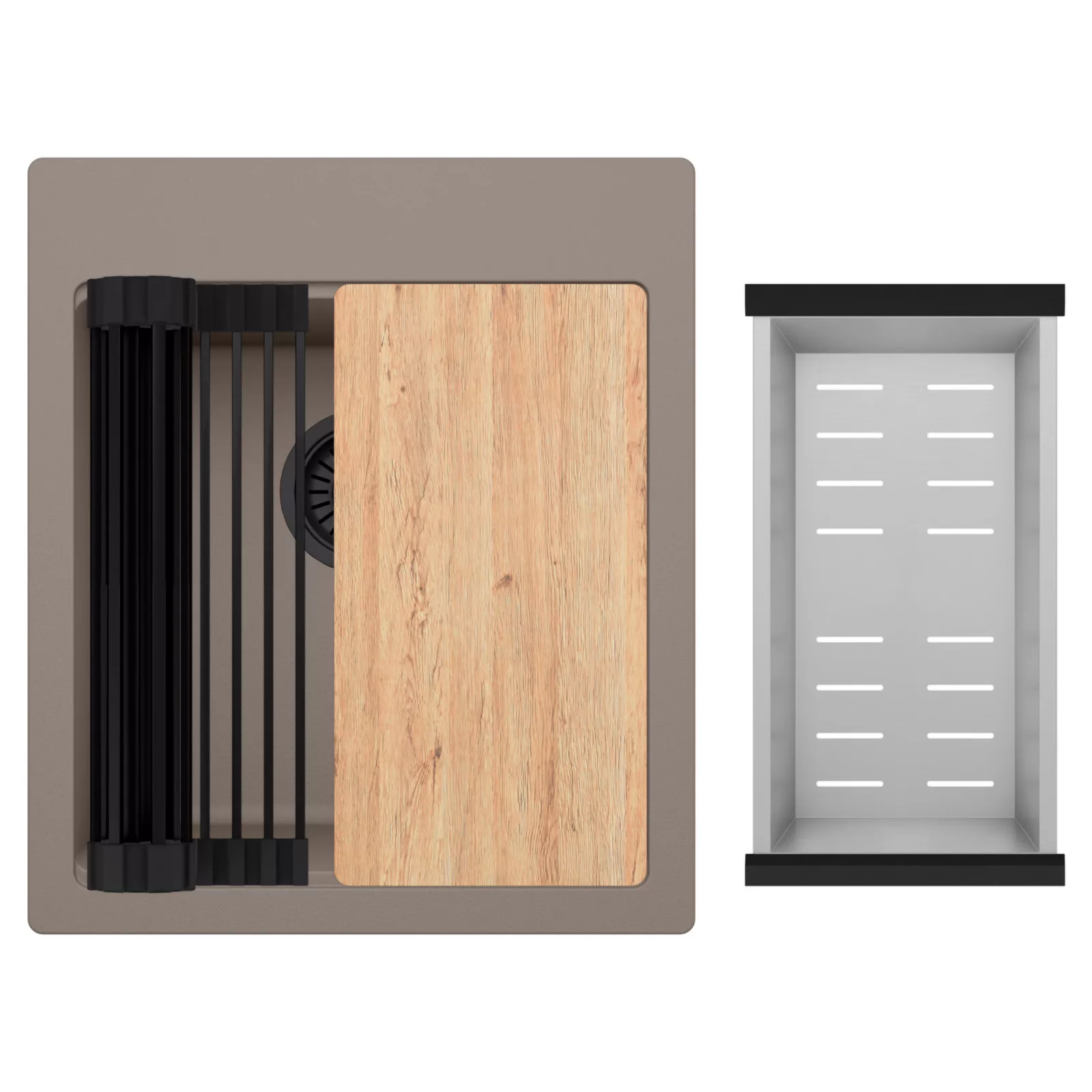 HD Infinity Tortora 43 egymedencés mosogatótálca szett, vágódeszkával, csepegtetőráccsal és kosárral, tortora