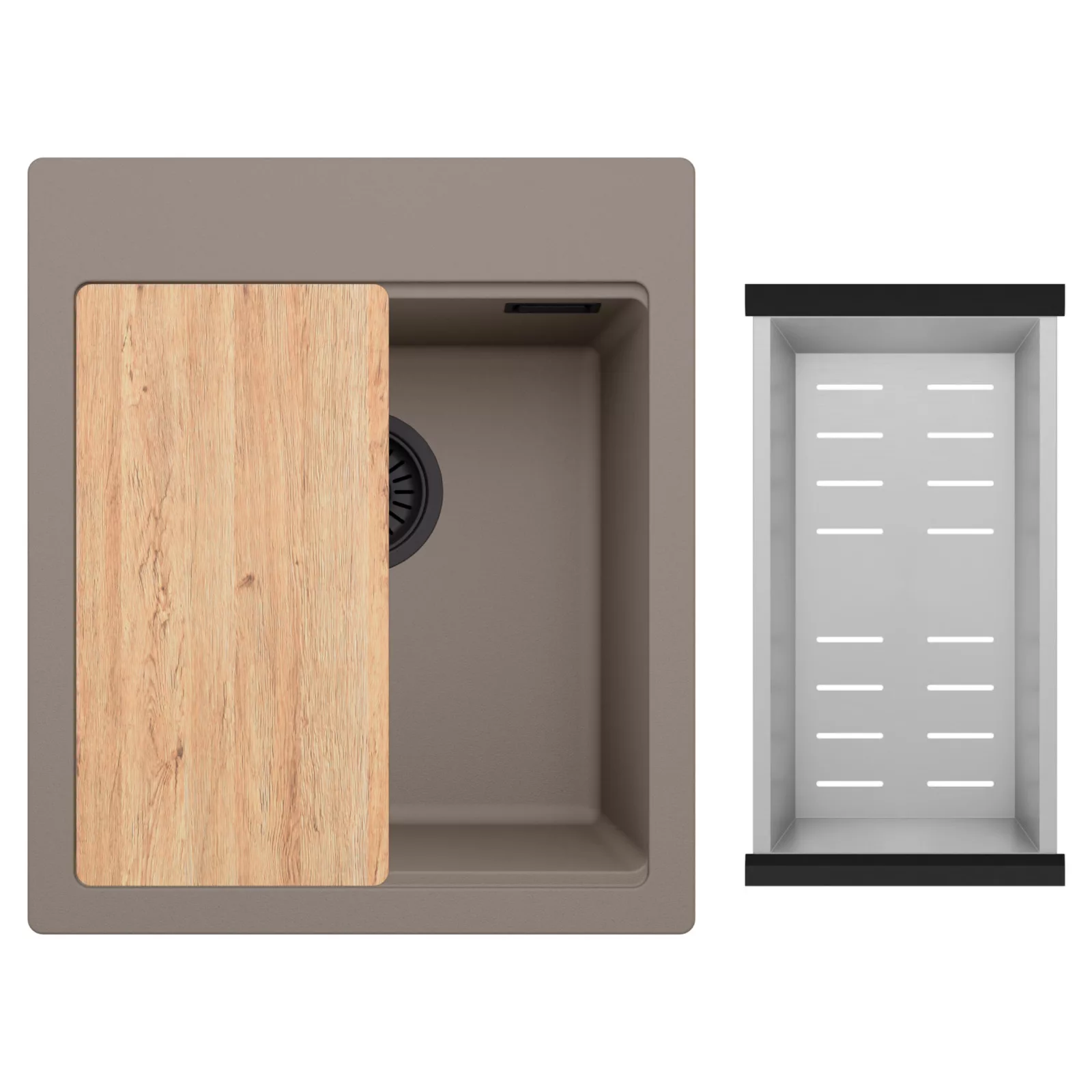 HD Infinity Tortora 43 egymedencés mosogatótálca szett, vágódeszkával és csepegtetőkosárral, tortora