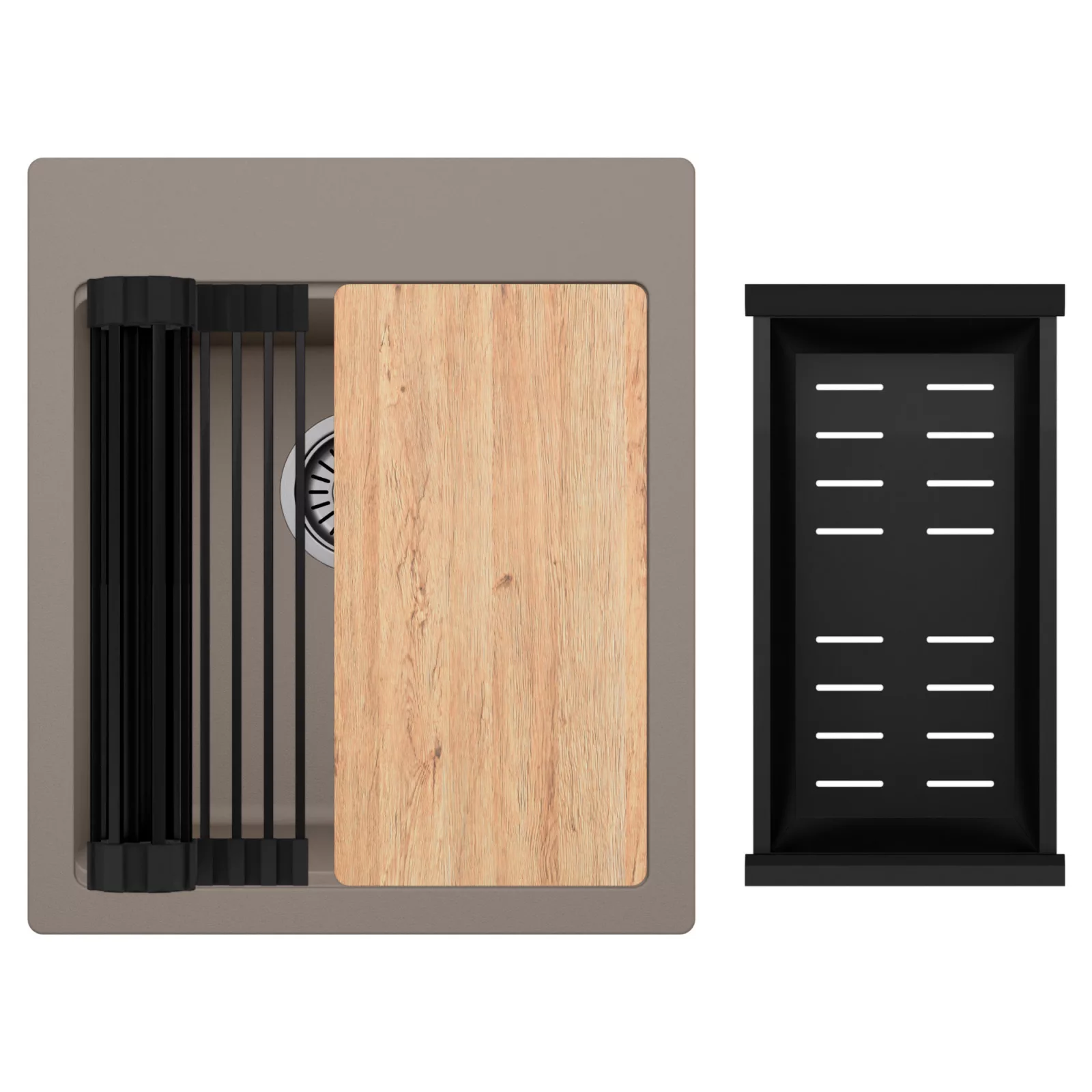 HD Infinity Tortora 43 egymedencés mosogatótálca szett, vágódeszkával, csepegtetőráccsal és kosárral, tortora