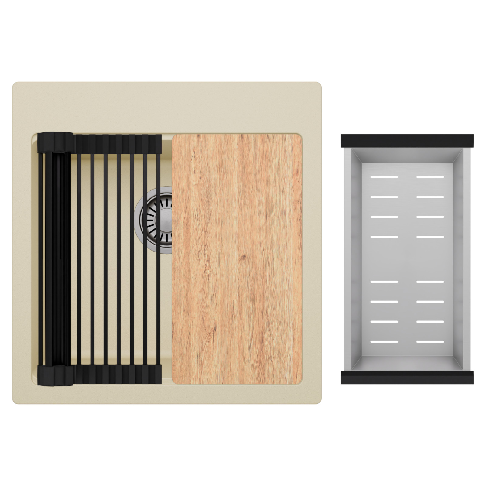 HD Infinity Beige 48 egymedencés mosogatótálca szett, vágódeszkával, csepegtetőráccsal és kosárral, soft bézs