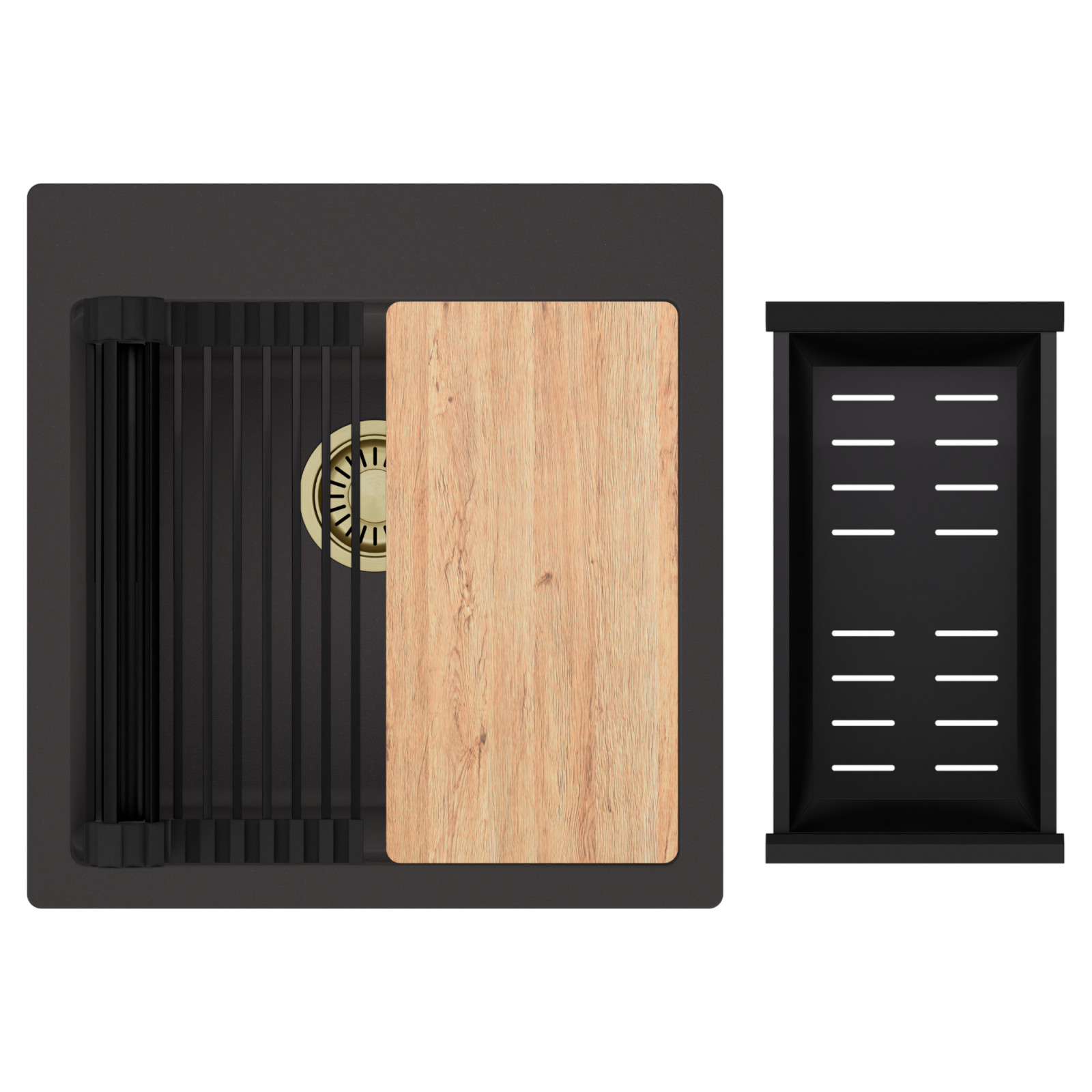 HD Infinity 48 egymedencés mosogatótálca szett, vágódeszkával, csepegtetőráccsal és kosárral, matt antracit