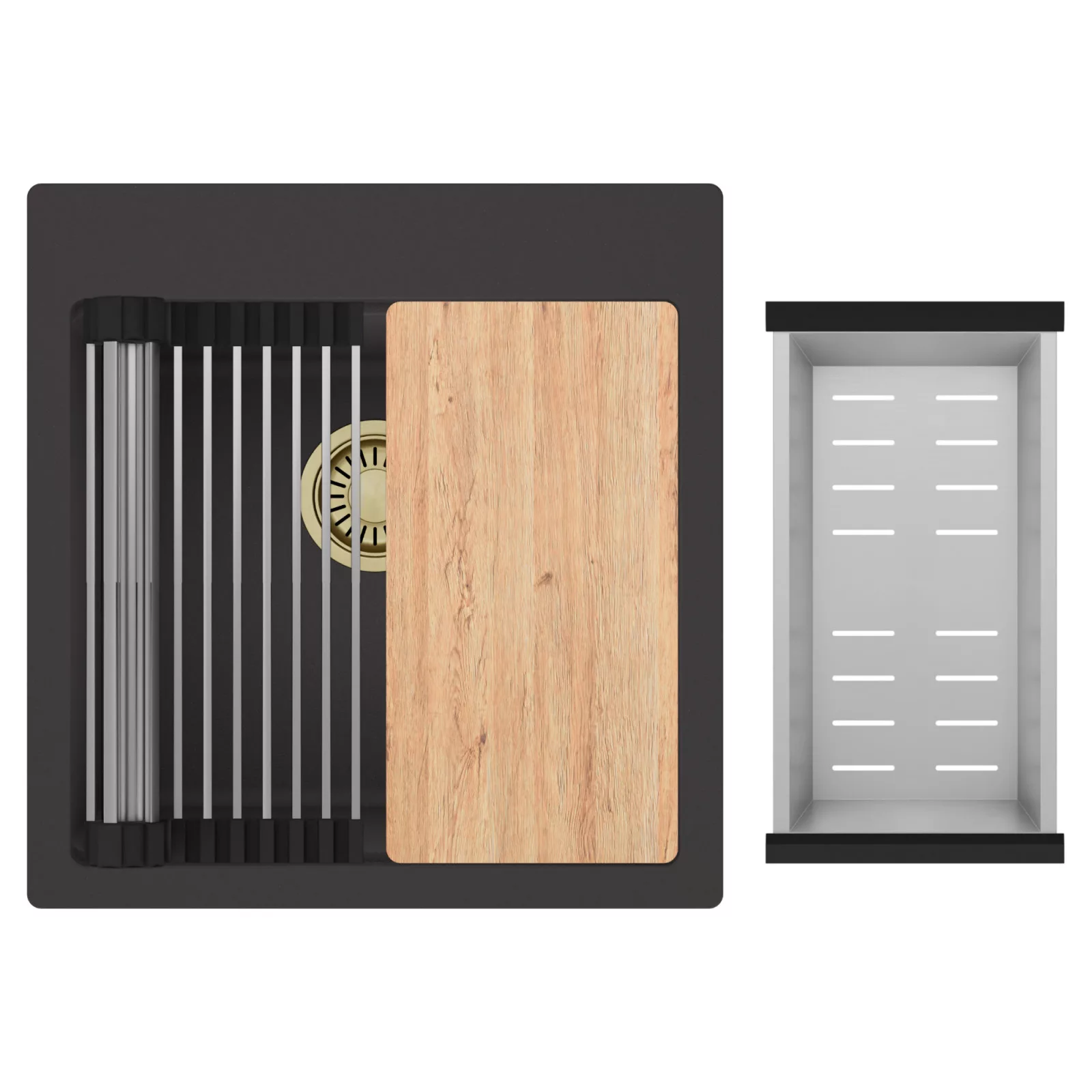 HD Infinity 48 egymedencés mosogatótálca szett, vágódeszkával, csepegtetőráccsal és kosárral, matt antracit