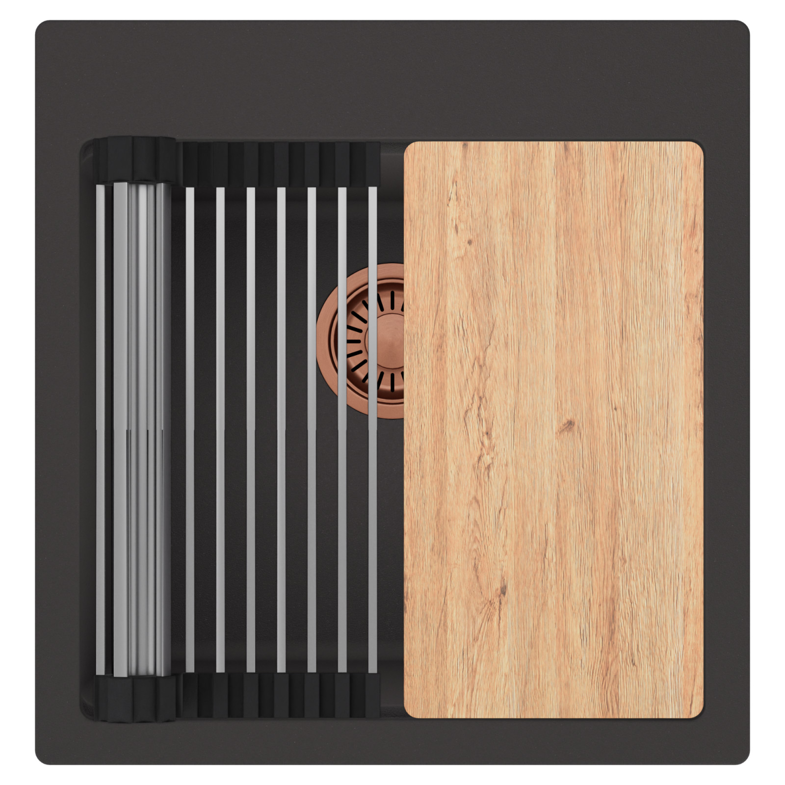 HD Infinity 48 egymedencés mosogatótálca szett, vágódeszkával és csepegtetőráccsal, matt antracit