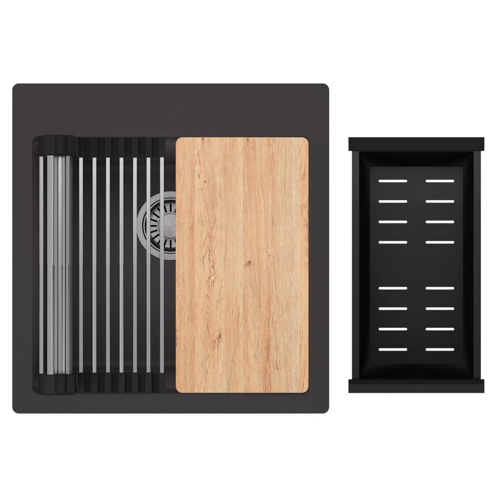 HD Infinity 48 egymedencés mosogatótálca szett, vágódeszkával, csepegtetőráccsal és kosárral, matt antracit