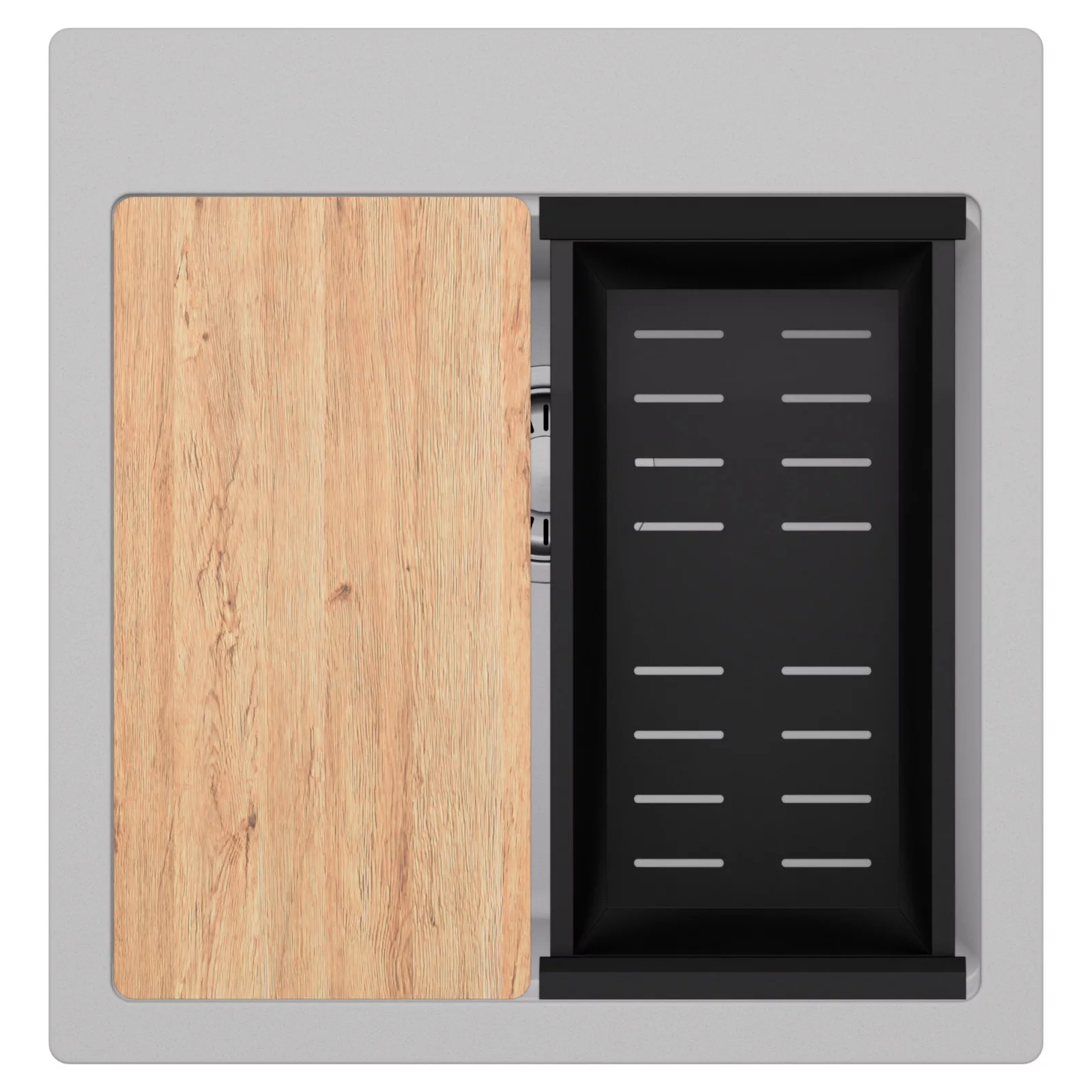 A HomeDepo SmartEdge Többfunkciós Peremrendszer egy intelligensen kialakított peremmegoldás, amely a mosogatót kompakt, mégis teljes értékű konyhai térré alakítja a mindennapok során. A speciális peremkialakítás lehetővé teszi a vágódeszka, a feltekerhető csepegtető rács, a gyümölcsmosó és a csepegtető kosár stabil, biztonságos és kényelmes elhelyezését közvetlenül a mosogató speciális belső peremén. A kiegészítők síkban csúsztathatók és szabadon kombinálhatók, így extra munkafelületet nyersz anélkül, hogy helyet foglalnál a konyhapulton – a mosogató valódi többfunkciós központtá válik.