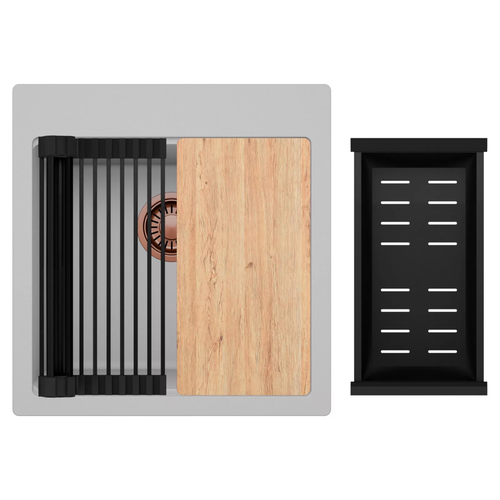 Termék mérete: 48x50 cm Szekrényméreti igény: 50 cm Medence mérete: 42x39x21,5 cm Medencék száma: Egymedencés Felhasználhatóság: Pultba építhető Könnyített fúratok száma: 3 Anyag: Gránit Anyagvastagság: 8-10 mm Tartozékok: Mosogatótálca, vágódeszka, matt fekete csepegtetőrács és kosár, szifon - túlfolyóval és lefolyó takaróval Szifon szín: Szálcsiszolt réz Lefolyó takaró anyaga: Rozsdamentes acél HomeDepo SmartEdge Többfunkciós Peremrendszer