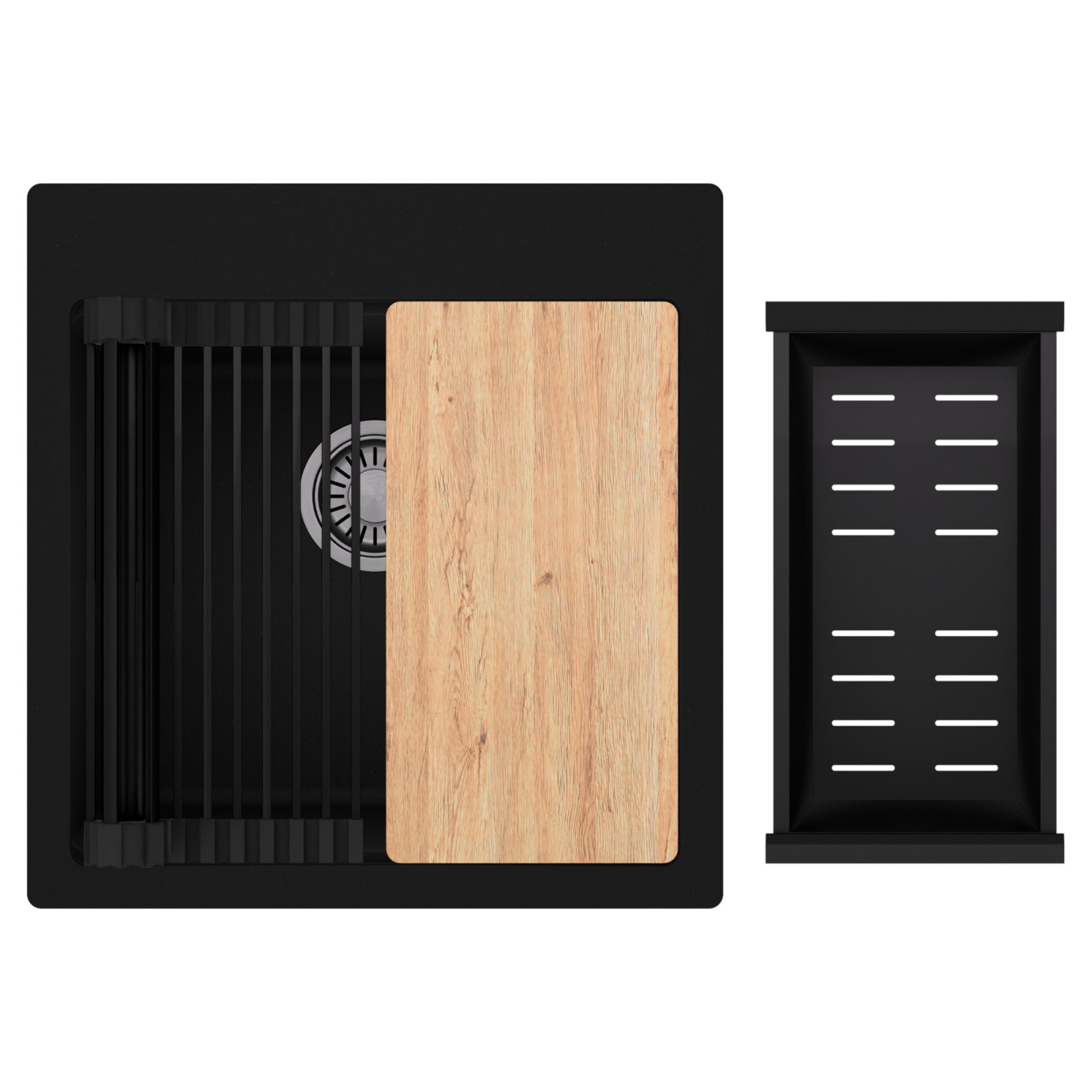 HD Infinity 48 egymedencés mosogatótálca szett, vágódeszkával, csepegtetőráccsal és kosárral, matt fekete