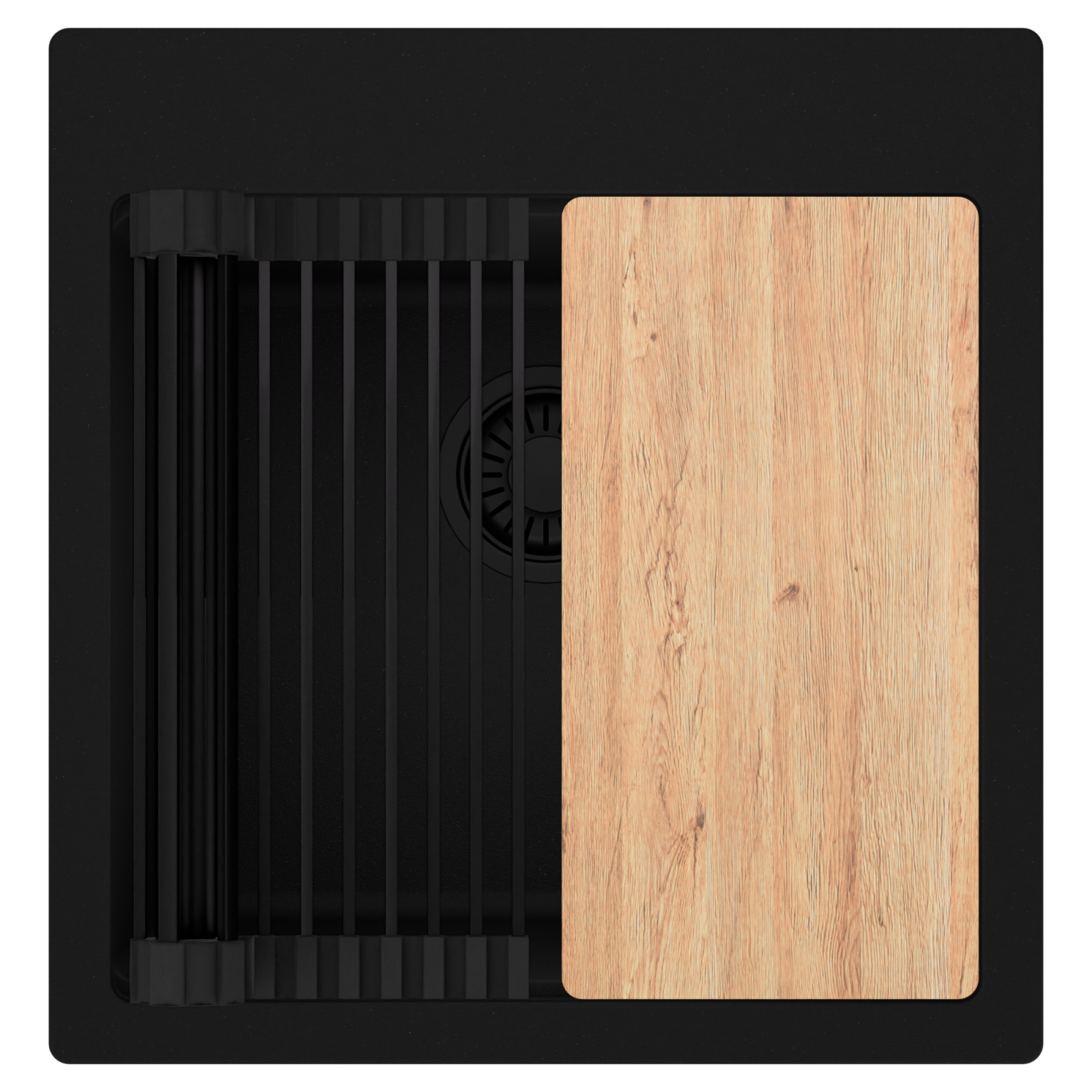 HD Infinity 48 egymedencés mosogatótálca szett, vágódeszkával és csepegtetőráccsal, matt fekete